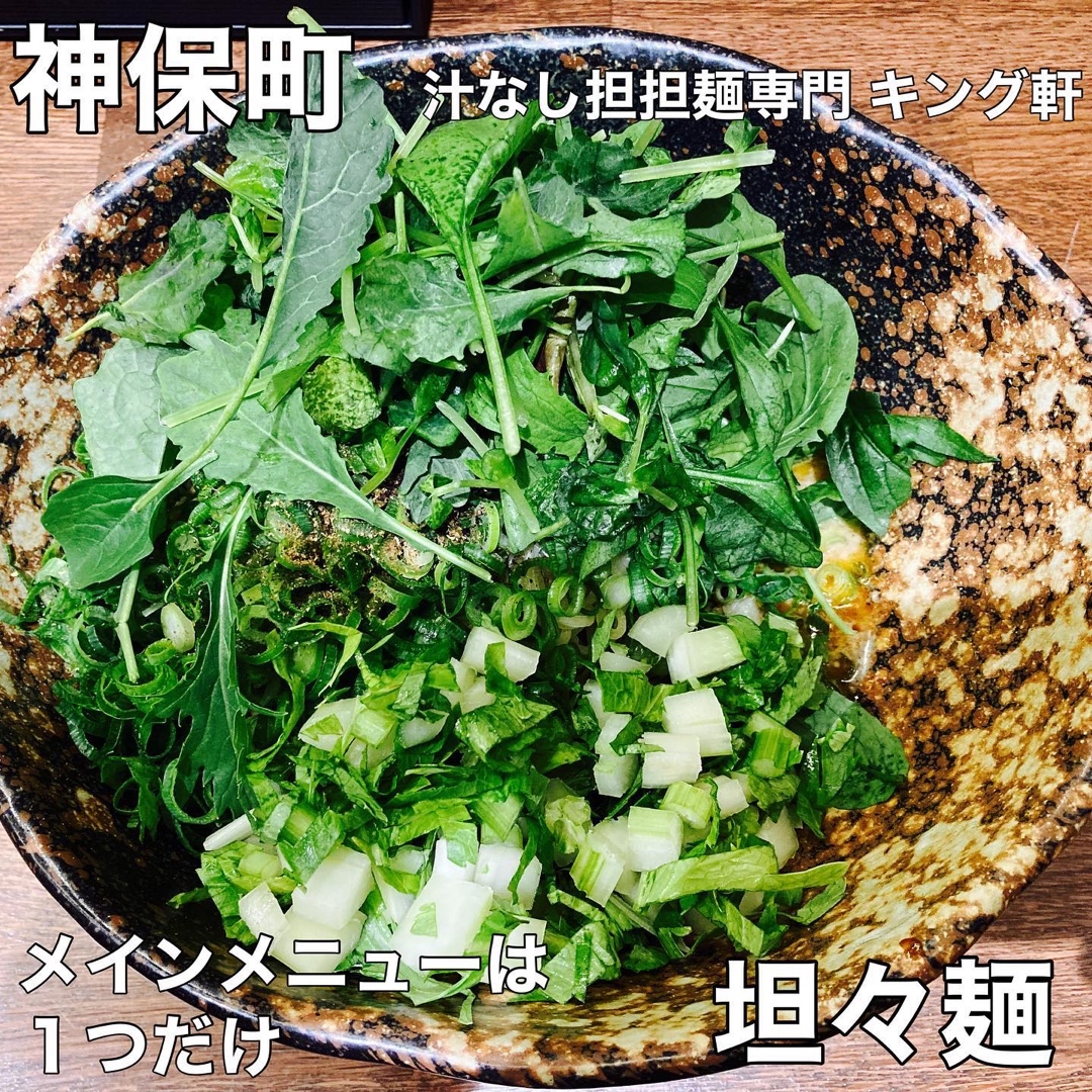 神保町・キング軒は広島発の汁なし担担麺専門店。毎朝挽きたての山椒3種で香り高い自家製ダレが自慢。麺は広島製麺所から日々直送。星型の箸で30回混ぜるのが作法。温泉卵・ネギ盛り・野菜トッピング自由。駅近・山椒のお土産あり。