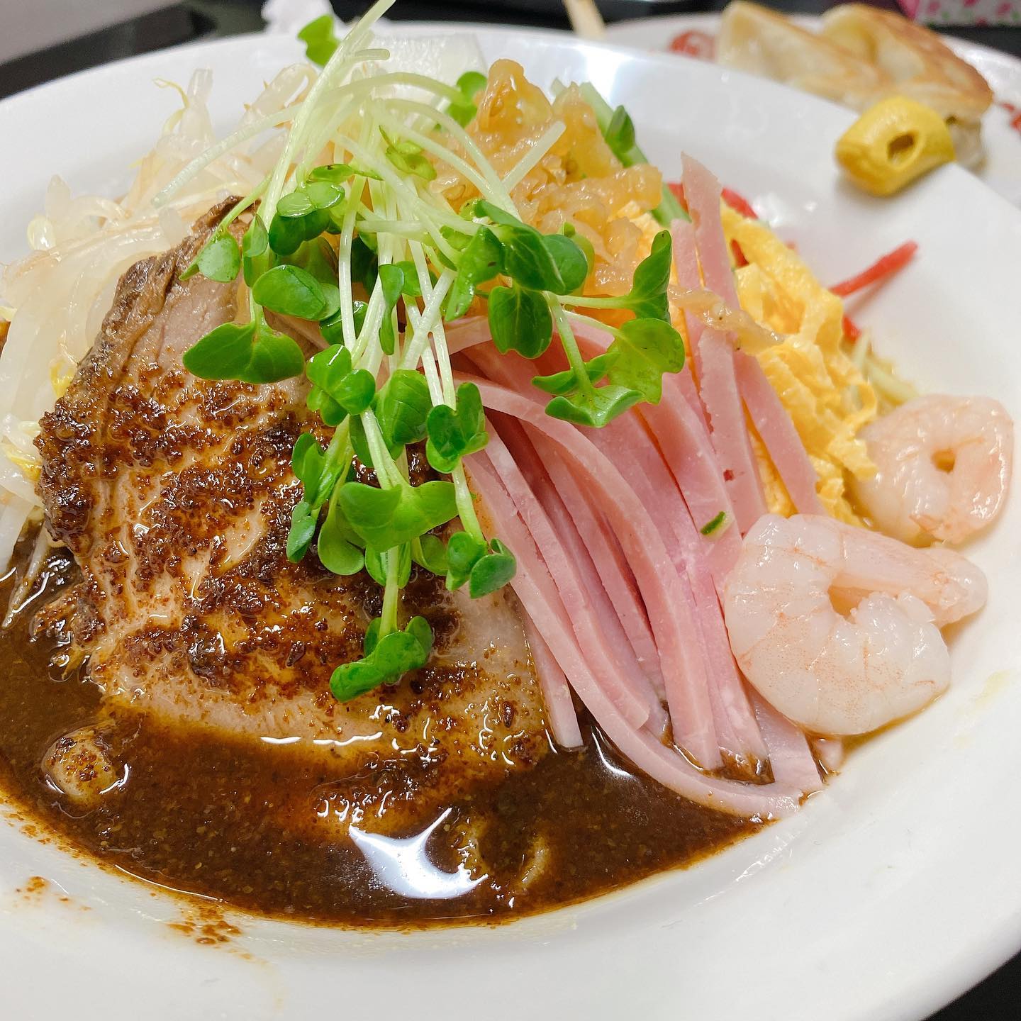 浅草の馬賊は、手打ち麺を打つ音が名物。夏季には4種類の冷やし中華が登場し、具材たっぷりのピリ辛胡麻だれが特徴です。コシのある麺とさわやかな喉越しが魅力で、担々つけ麺もおすすめ。1人でも入りやすい雰囲気です。
