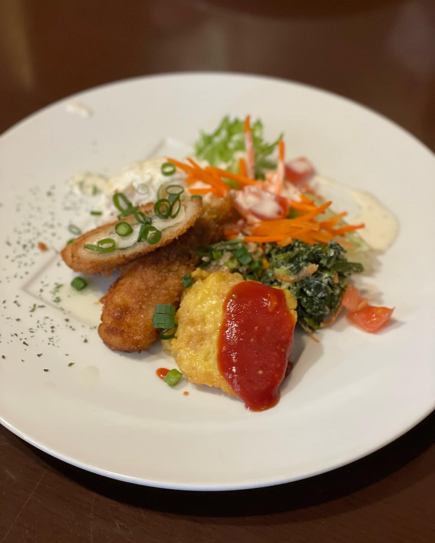 一宮のカフェ&キッチンめぞん・ド・グリエは、自家製ハンバーグが看板。夏野菜たっぷりハワイアンハンバーグと前菜・パスタ・ドリンクバー付きのランチセットが魅力です。女子会コースは2000円でボリューム満点。12周年を迎えました。