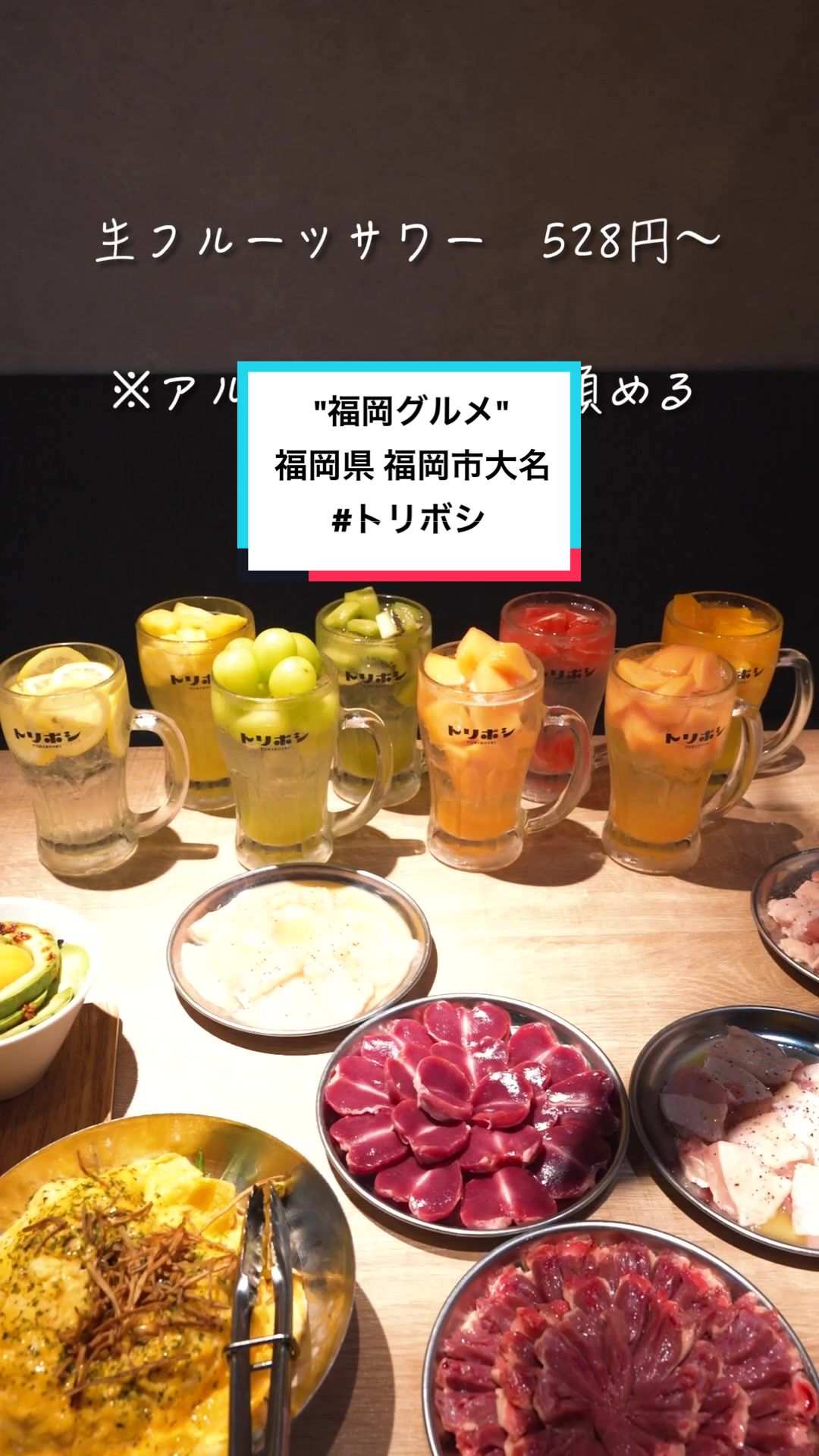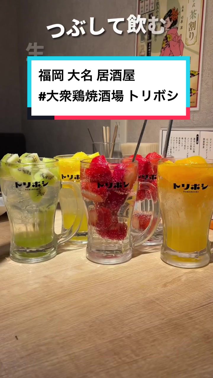 コスパ最強で可愛い生フルーツサワーと鶏焼が楽しめるお店❣️福岡県『大衆鶏焼酒場 トリボシ』大学生に超オススメだから是非行ってみて‼️✨😆#おすすめスポット#福岡グルメ#福岡居酒屋#大衆鶏焼酒場トリボシ#福岡観光