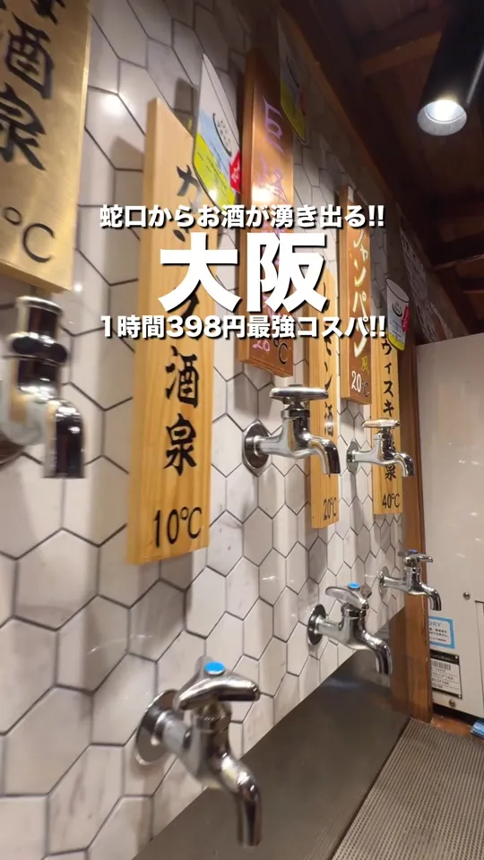 大阪駅前第二ビル泉店限定でこの投稿を見たって店員さんに伝えると動画で紹介してる蛇口から出てくるお酒が1時間無料!