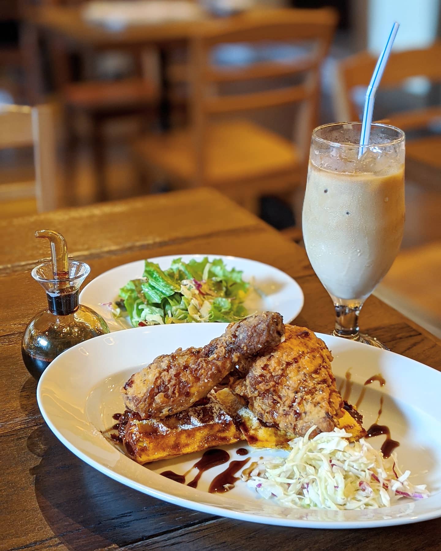 フライドチキンとワッフルが一緒に楽しめるセット🌟