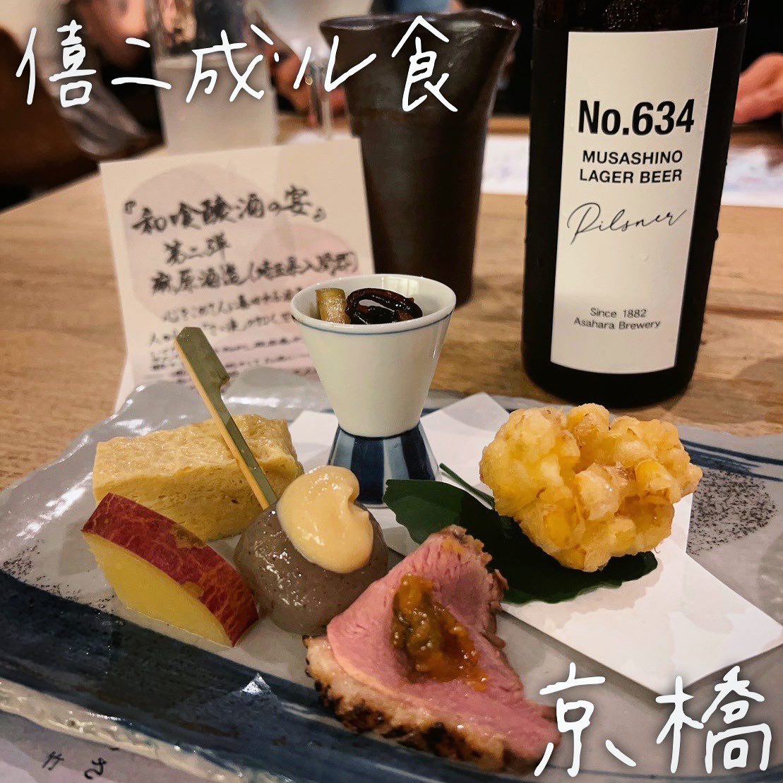 京橋の『僖ニ成ル食』は、こだわりの和食と厳選日本酒のペアリングを月1回実施。今回は麻原酒造とのコラボによる和酒×和食の宴で、熟成違いの酒も楽しめます。アクセスは京橋駅3分、価格は6,000円〜。ランチはうどんが評判です。