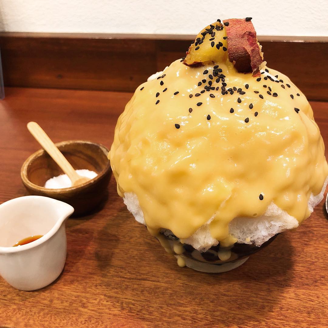 かき氷に芋、安定極まれり。華燕行けなかった腹いせに男4人で。うえたかが、"芋づくし"を頼んだのに、「全部芋やん💢」ってキレてた。