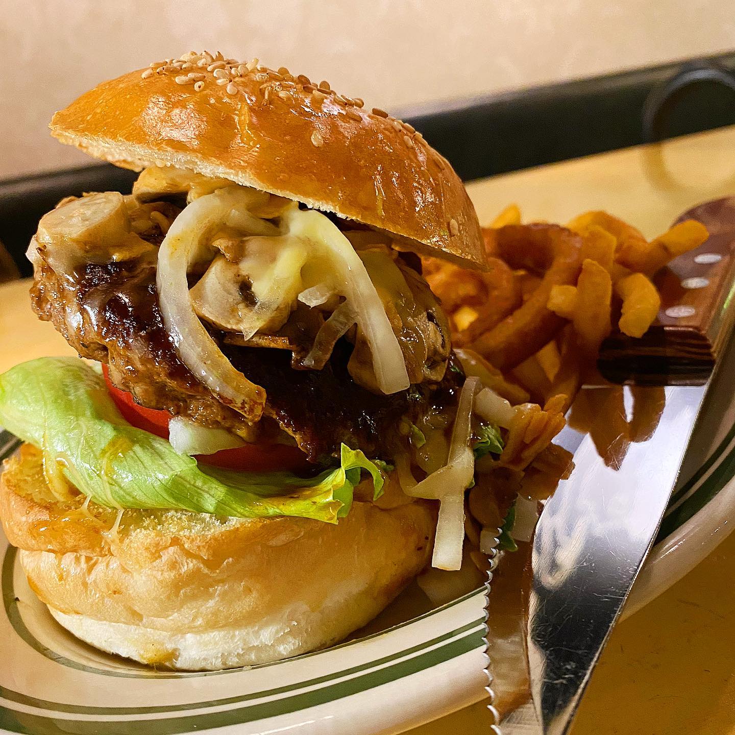 高円寺駅3分のメアリーキッチン高円寺は、ふわふわバンズと新鮮野菜、ジューシーなパティが魅力です。アボカドチーズバーガー(1190円)やガーリックマッシュルームマヨ(1480円)は、ポテトとオニオンリング付きで食べ応えがあります。混雑時は約40分待ちです。