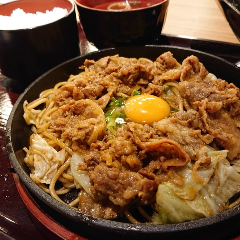 大阪・北浜の焼きそば専門店。もちもち麺の肉焼きそばが看板メニューで、台湾ミンチはピリ辛。ランチは白ごはん・味噌汁・生卵が食べ放題、鉄板ごと提供され最後までアツアツ。ランチ880円のコスパも魅力。