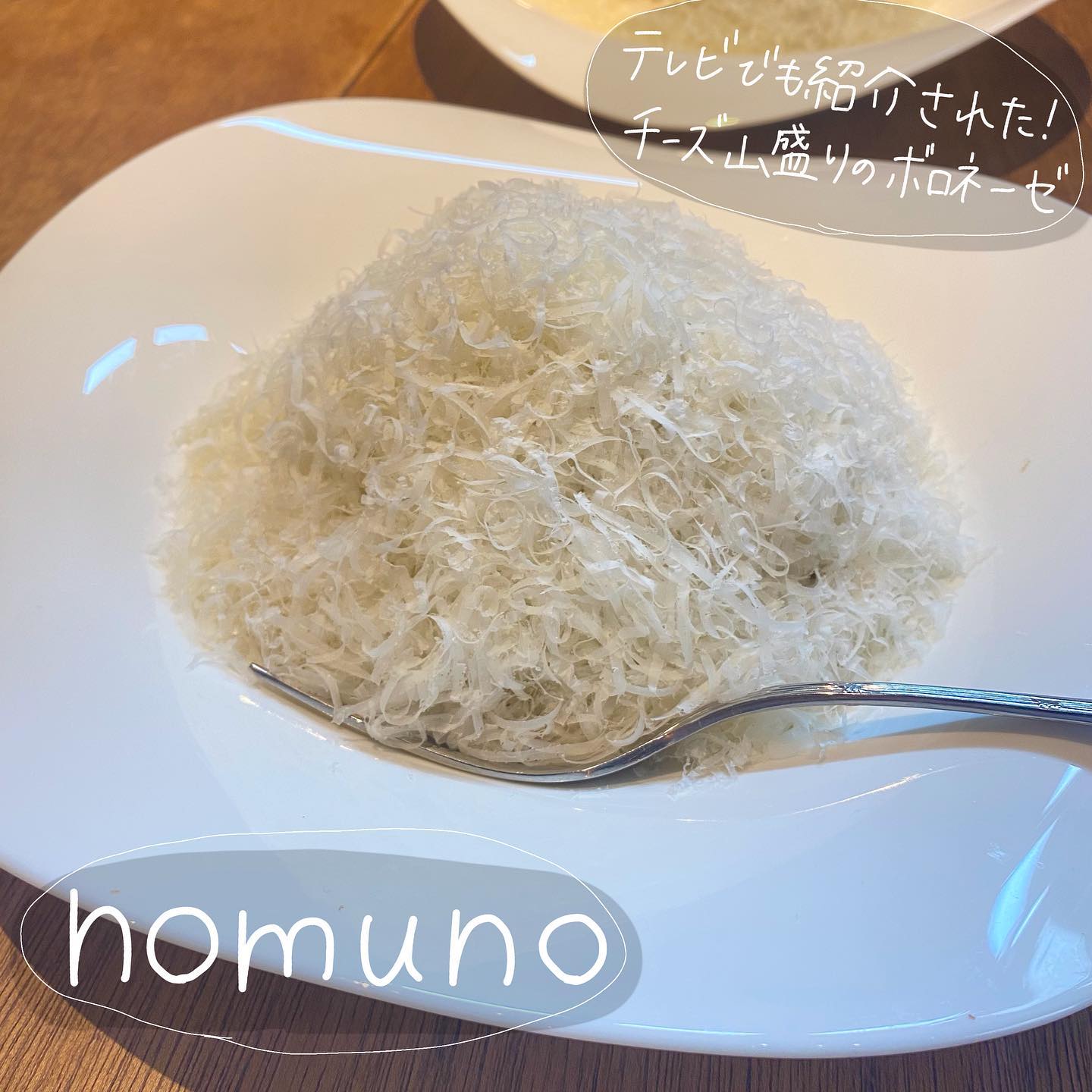 ボロネーゼの上にチーズをたんまりかけてもらえるお店