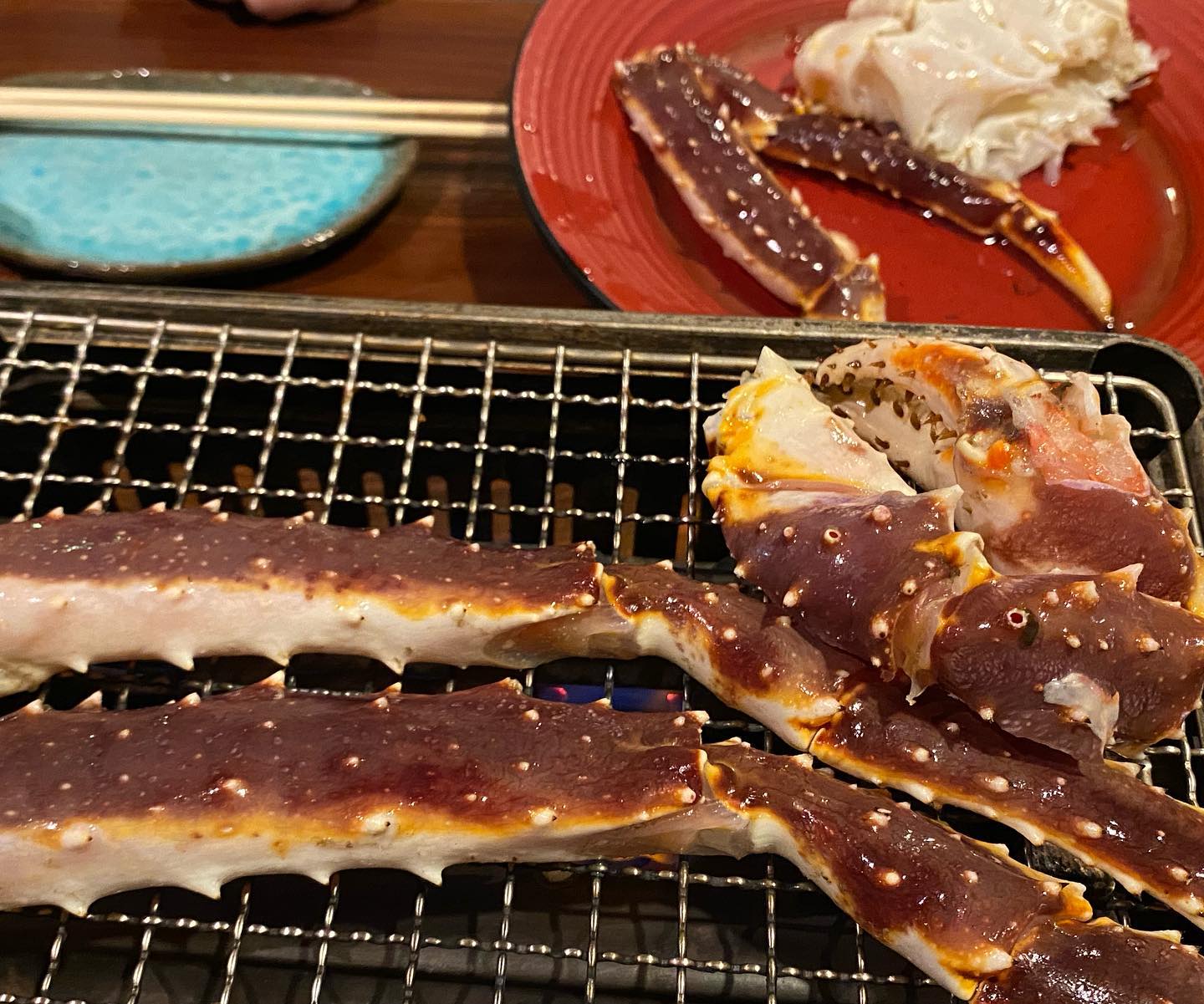 焼きたてのタラバ蟹に、濃厚な蟹味噌をたっぷり絡めて✨網の上でふっくら焼いた蟹の甘さと香ばしさがたまらない🤤🦀