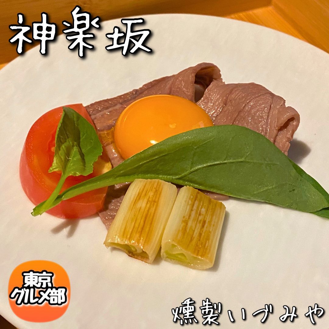 燻製いづみやは、神楽坂の一軒家を使った完全予約制の隠れ家レストランです。全席個室・完全非接触で、来店前に暗証番号を入力して入室します。料理は燻製を軸にしたコースで、野菜や刺身、もつ鍋などを自分で冷蔵庫から取り出して楽しむ新感覚スタイル。雰囲気は旅館のようで、デートや特別な時間におすすめです。