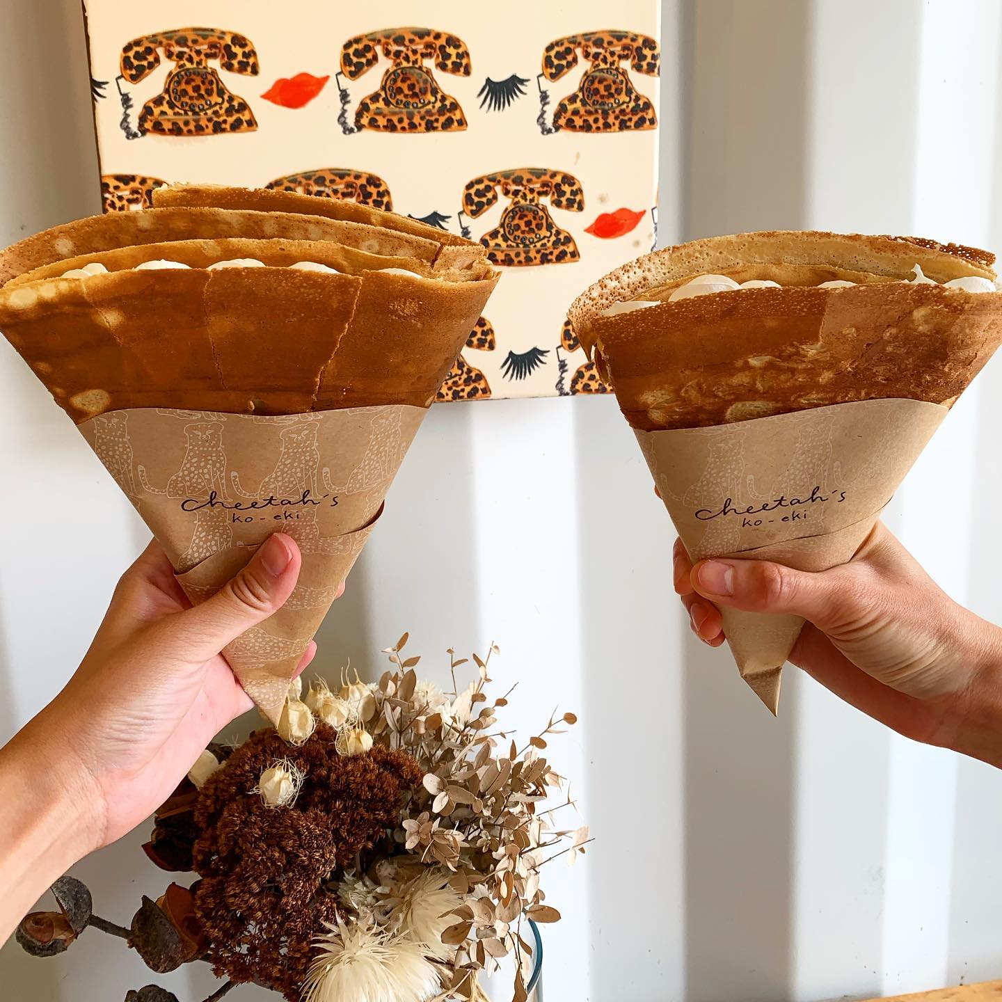 豊川市・国府駅すぐそばの人気クレープ店です。チーターズはパリパリで厚めの生地にホイップを合わせたボリュームが特徴。苺カスタードホイップやブルーベリーホイップなど多彩な味があります。待ち時間は日によって変動します。駐車場あり(店前3台・別2台)