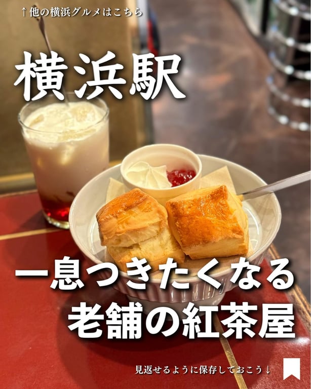 横浜のジョイナスB2Fにある老舗紅茶専門店サモアールは、1974年創業の歴史あるティーショップです。名物のロイヤルミルクティーとしっとりスコーンのセットが人気で、アンティーク調の店内とテラス席が特長です。