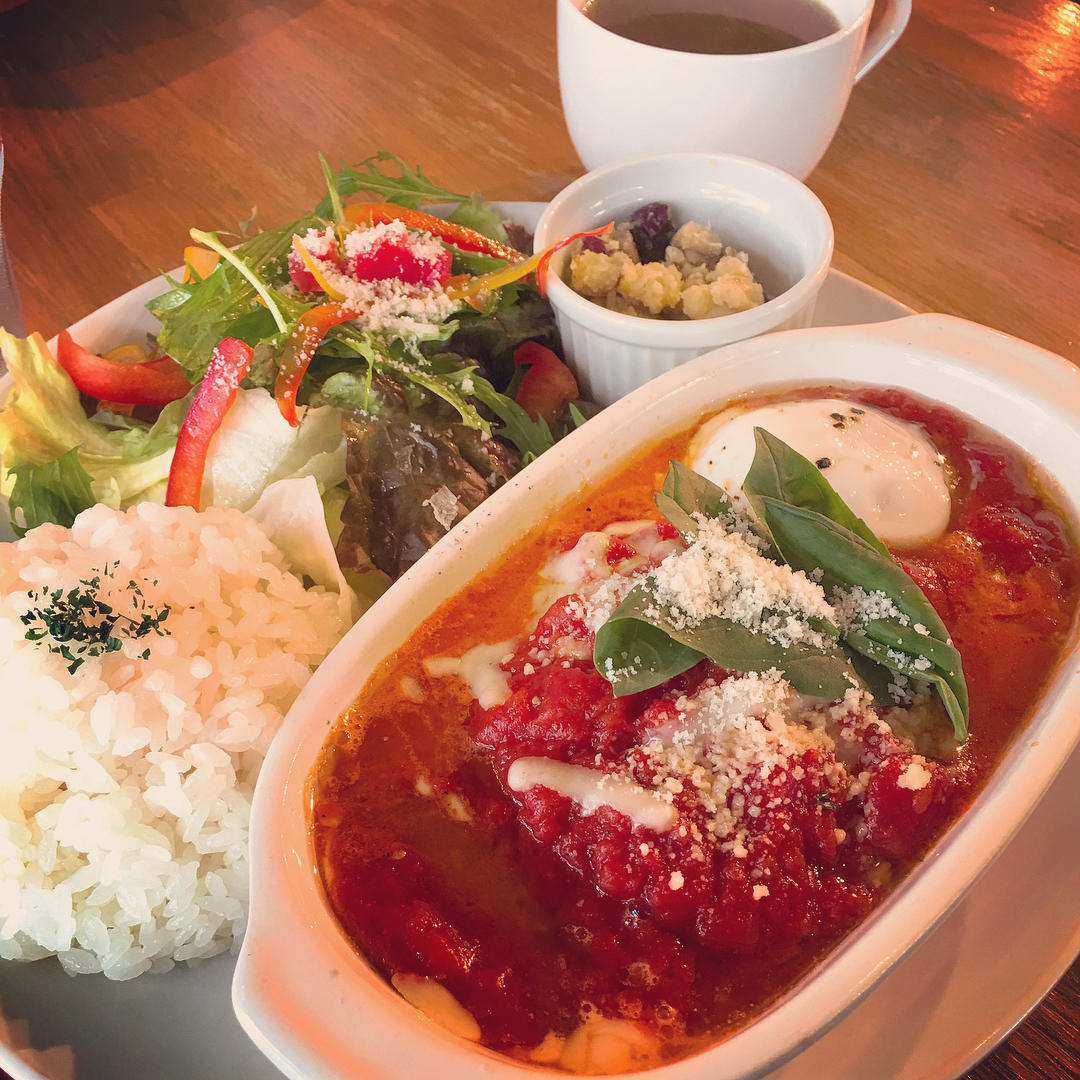 犬山城近くのスワンカフェは、モーニングからランチまで楽しめるカフェです。ハンバーグのトマトソースととろけるチーズの熱々プレートランチに、ドリンク付き。犬山〆パフェ祭期間中はパフェも味わえます。