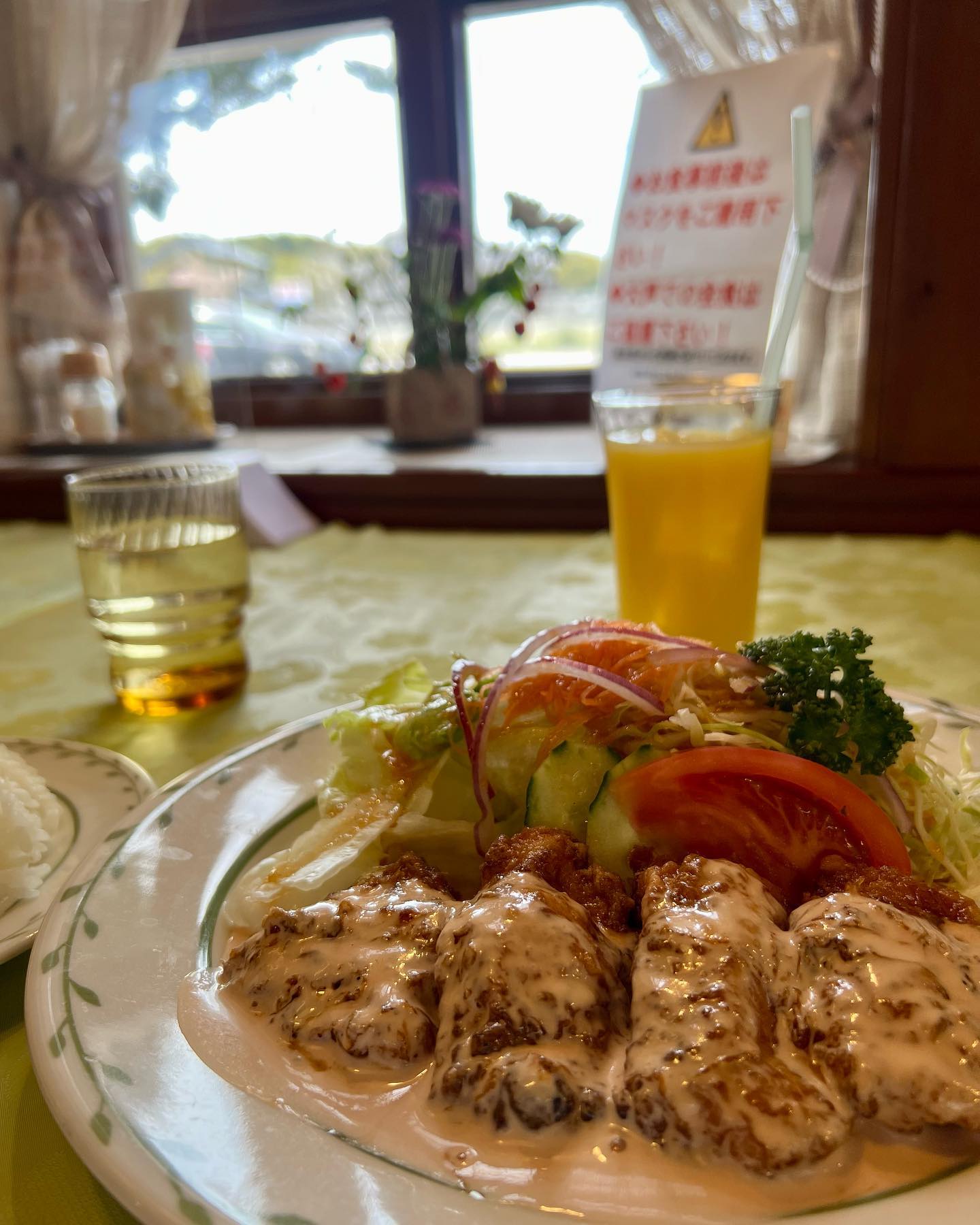 熊本県御船町のレストランおにおんは、チキン南蛮と柔らかいハンバーグが看板メニュー。濃厚なかぼちゃのポタージュも絶品で、ソースはご飯が進む味わいです。