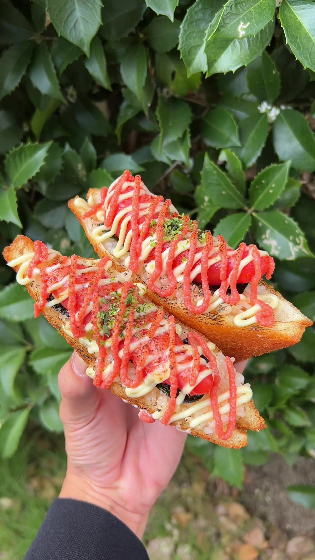 明太子1本とご飯が乗った揚げ明太ご飯サンド🍞🍚...