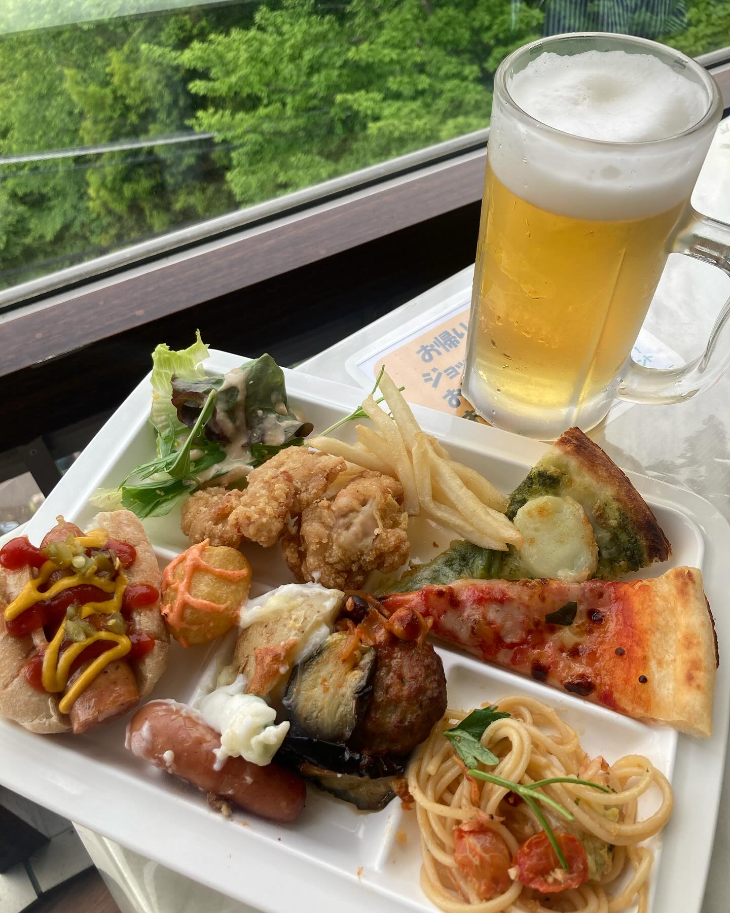 標高488mの高尾山にある高尾山ビアマウントは、室内席から絶景を眺めながら楽しむビアガーデンです。和洋中30種類以上の料理と90分の食べ飲み放題、天狗ドッグや季節メニューが魅力です。