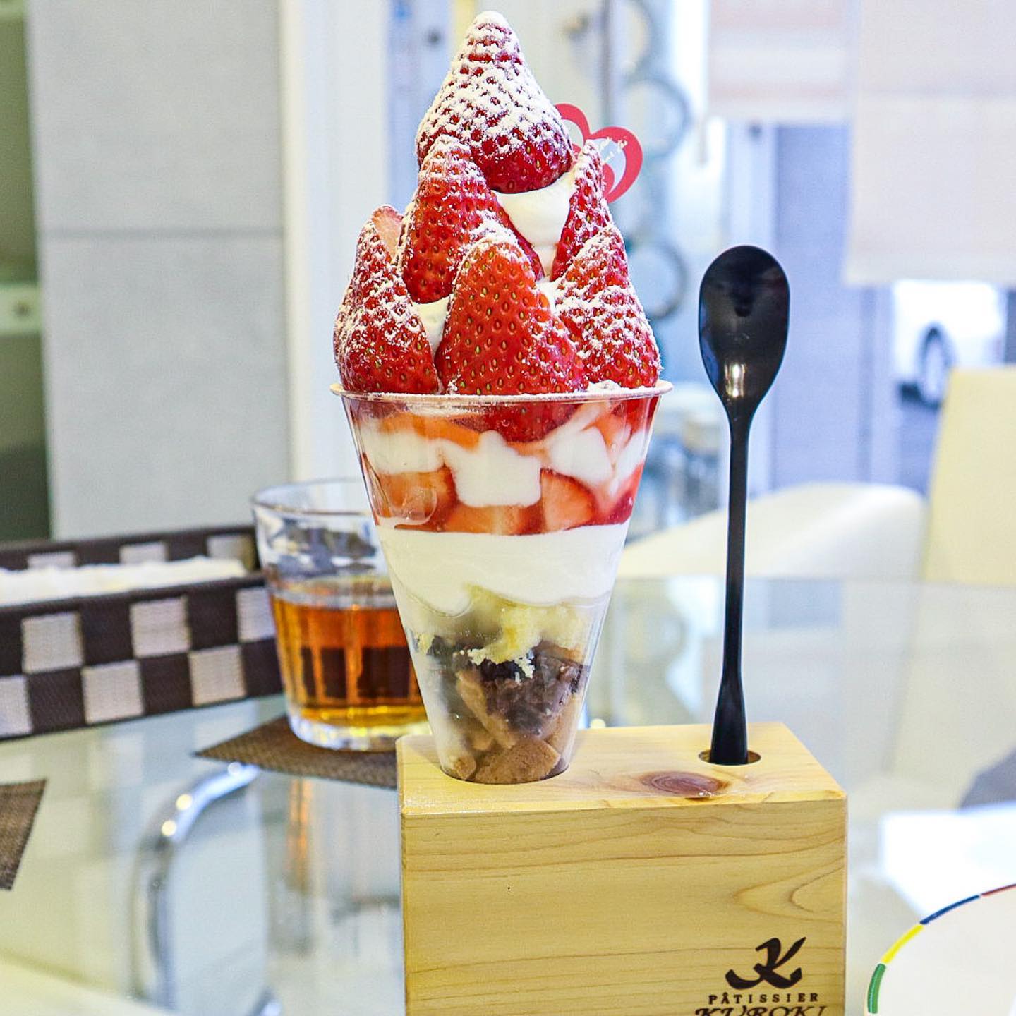 愛知県愛西市のPATISSIER KUROKIは、白を基調とした清潔感あふれるパティスリーです。季節のマンゴーと桃のパフェはもちろん、テイクアウトも可能。杏仁プリンをはじめとするこだわりの素材が味わえ、ゆったりと過ごせます。藤浪駅から徒歩16分。