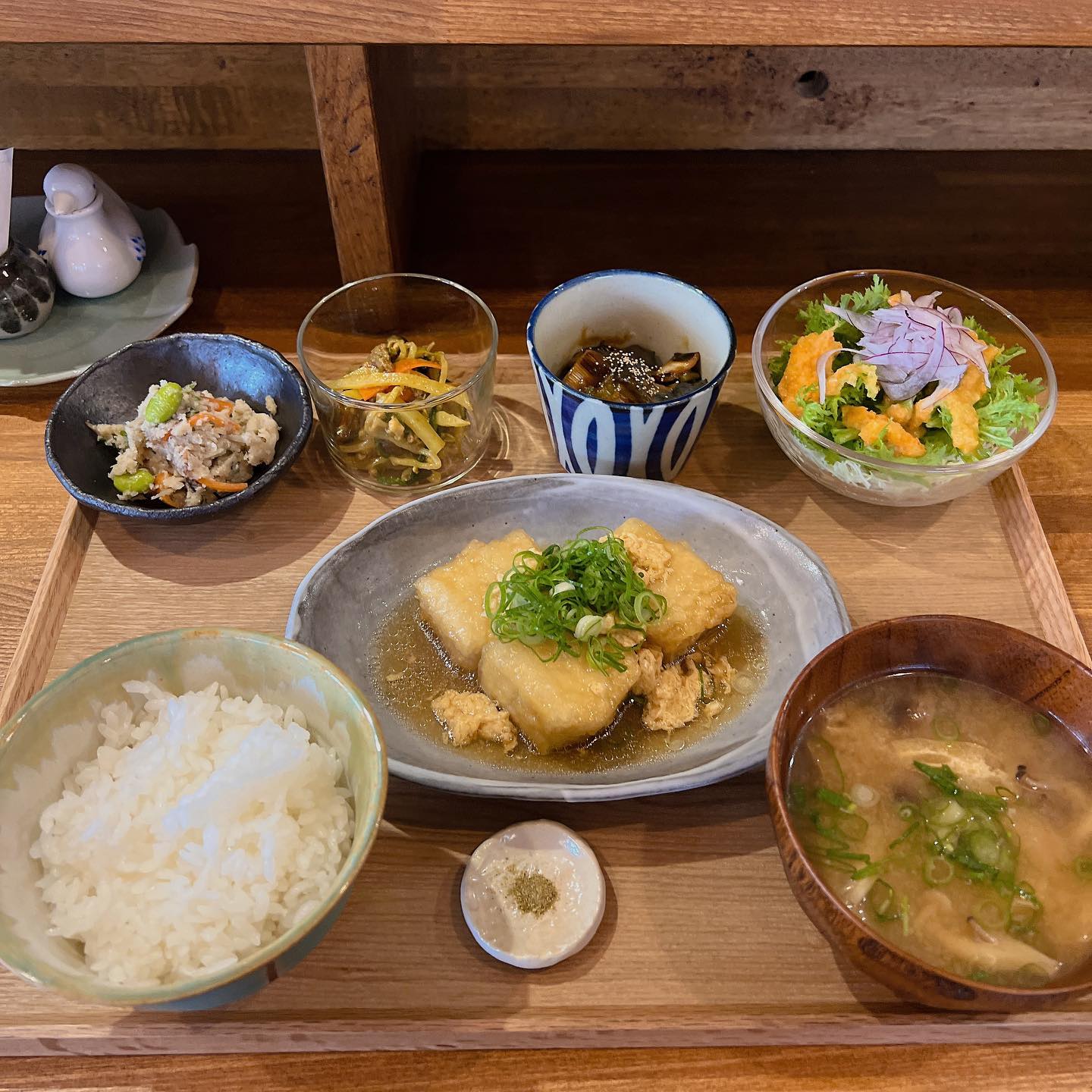 山ノ内町の食堂よろしき日は、週替わり定食と定番メニューが両方美味しく、豆腐料理と手作りぎょうざが人気。出汁が効いたおでん定食や豆腐丼もおすすめ。器を自分で選べる楽しみも。12:00〜19:00、月曜定休、駐車場横。