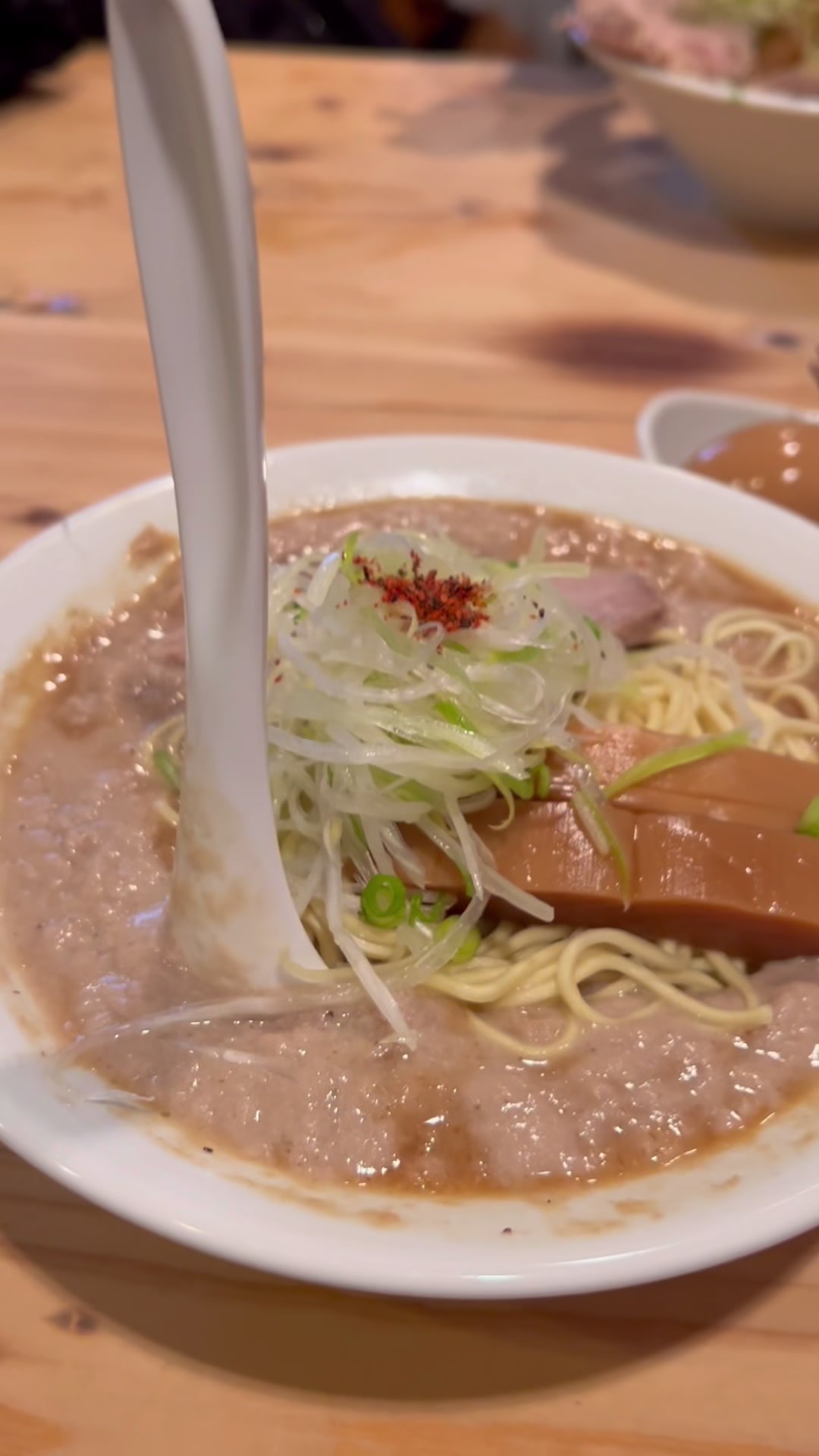 いつ行っても行列ができてる一乗寺の大人気ラーメン屋さん🍜レンゲも立っちゃうくらいの超濃厚スープは相変わらず健在。昼ドラくらいドロドロしてはる? #京都グルメ #京都食べ歩き #京都ラーメン #京都名物 #京都旅行