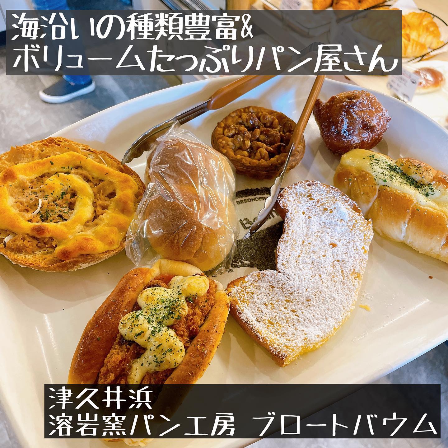 三浦海岸の人気パン屋、溶岩窯パン工房ブロートバウム。惣菜・甘パンが充実し、価格もお手頃です。子供向けパンが多く、ウインナー入りの棒パンやあんこと求肥のデニッシュが特におすすめです。