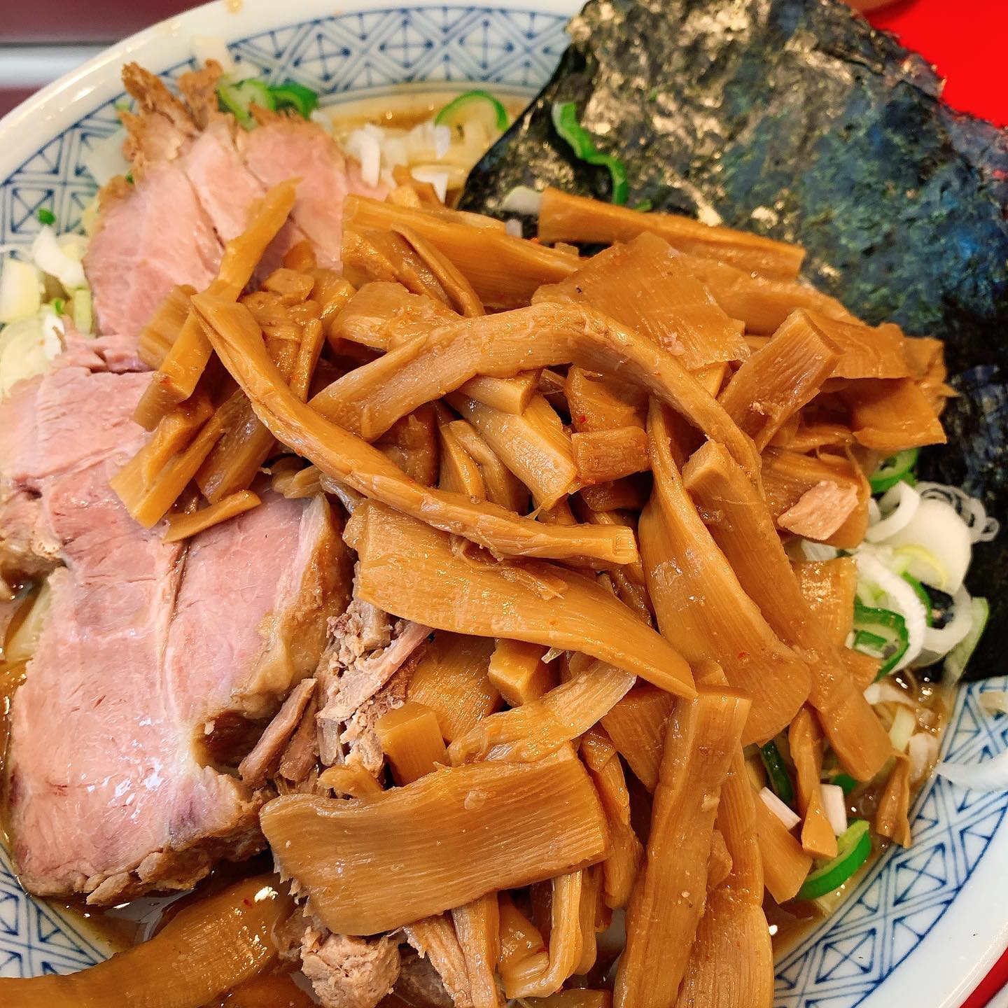 ・得勢ラーメン(メンマ増し、無料ネギ増し)