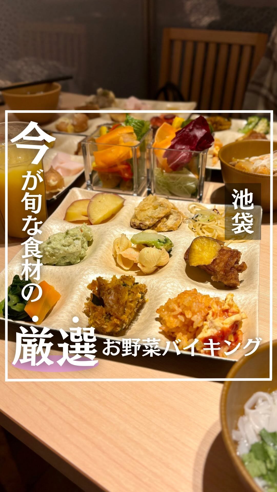 はーべすと ルミネ池袋店は、ルミネ池袋9階の自然食ビュッフェです。旬の野菜を中心に化学調味料を控え、秋メニューが豊富。フォー・うどん・お茶漬けまで揃い、デザートも和風系が充実します。ランチは平日1人1,999円、90分制。