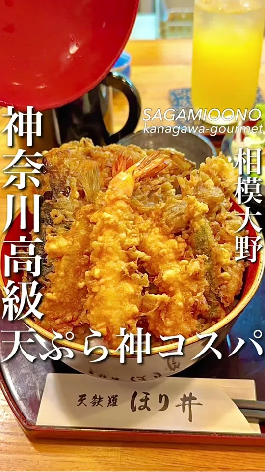 相模大野駅から徒歩4〜5分の『天ぷら ほり井』は、道35年以上の店主・堀井さんが丁寧に揚げる天ぷらが自慢。揚げたてを提供し衣はサクッとじゅわり。海老・魚・野菜がふっくら。天丼・天ぷら御膳は大盛り対応。銀座天一で修行歴ありの落ち着く空間です。