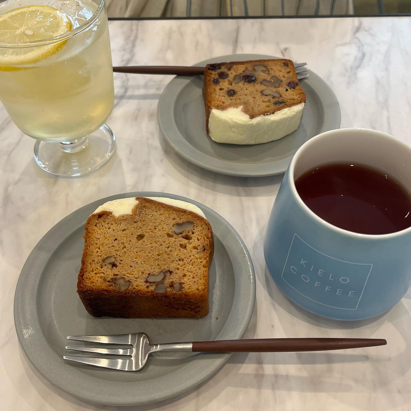 #アーモンドミルクラテ #バナナケーキ #カフェスタイル