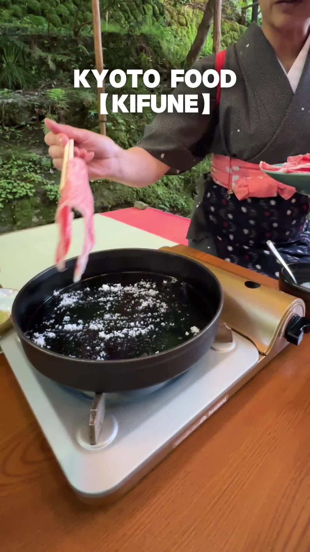 貴船神社近くの川床料理屋さんで贅沢な牛すき焼きコースを満喫🤤...