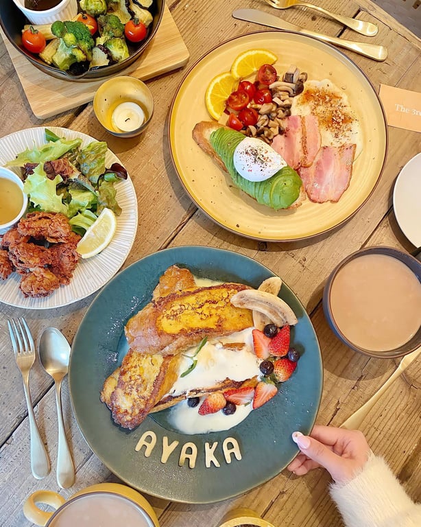 渋谷・神泉エリアにあるThe3rdのカフェは、海外ビーチ風の店内でインスタ映えのアサイーボウルやボリューム満点のフレンチトーストが自慢です。誕生日メッセージ入りのバースデープレートや名前入りプレートなど、サプライズ演出が充実しています。予約推奨で、デートや友人同士の集まりにも最適です。