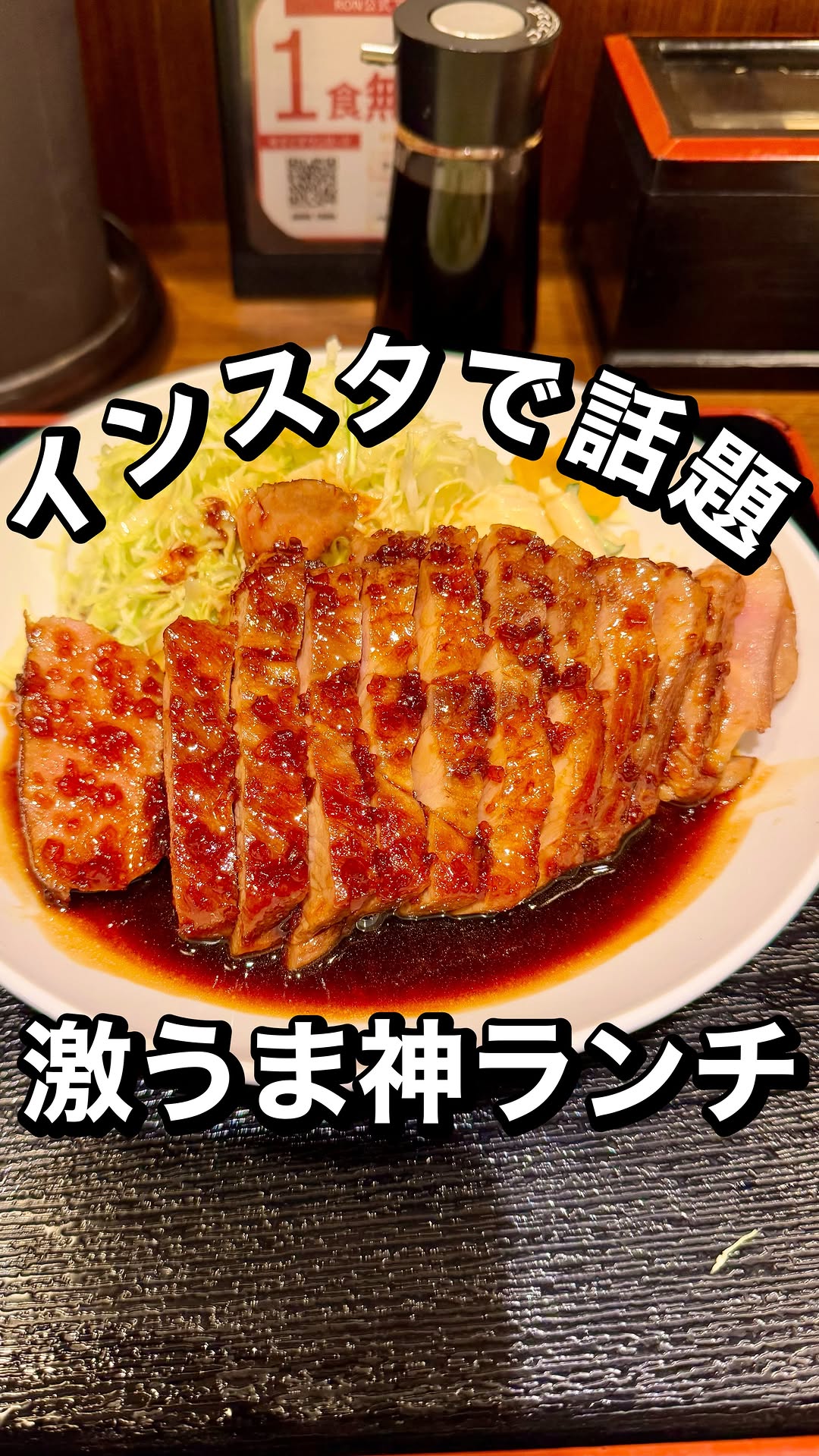 大阪・梅田の地下2階にある豚々亭は、厚切り300gのトンテキが名物。柔らかい豚肉と濃い醤油ベースのタレがご飯を進ませ、カラシ・山椒の味変も楽しめます。ご飯お代わり無料、マヨネーズのサービスは要望で出る時も。ランチは行列必至。