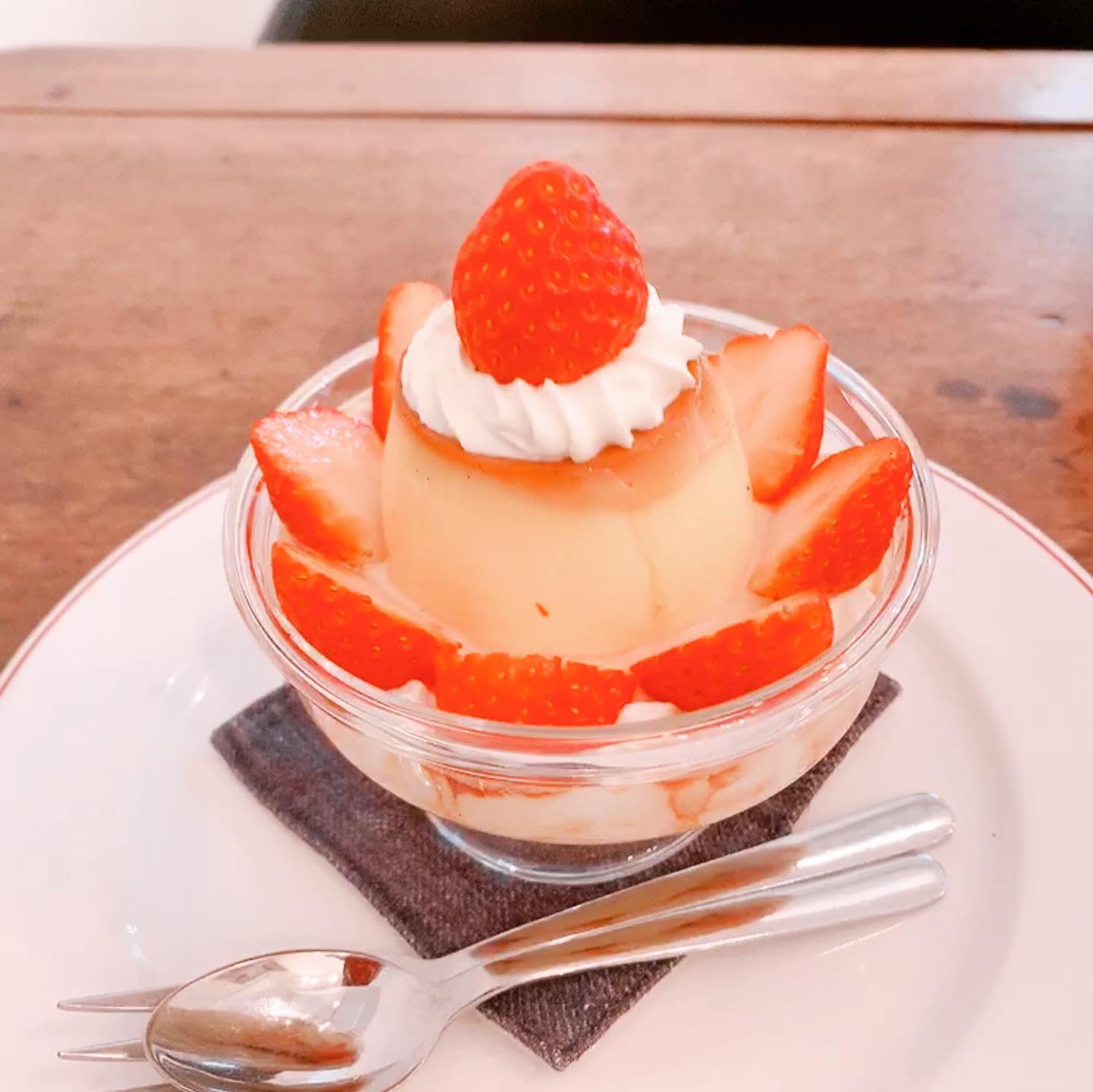 オシャレな店内で頂くプリンアラモードはまさに至福の一時。フレッシュな苺と、ほろ苦いカラメルの効いたプリンの相性がgood!ブレ...
