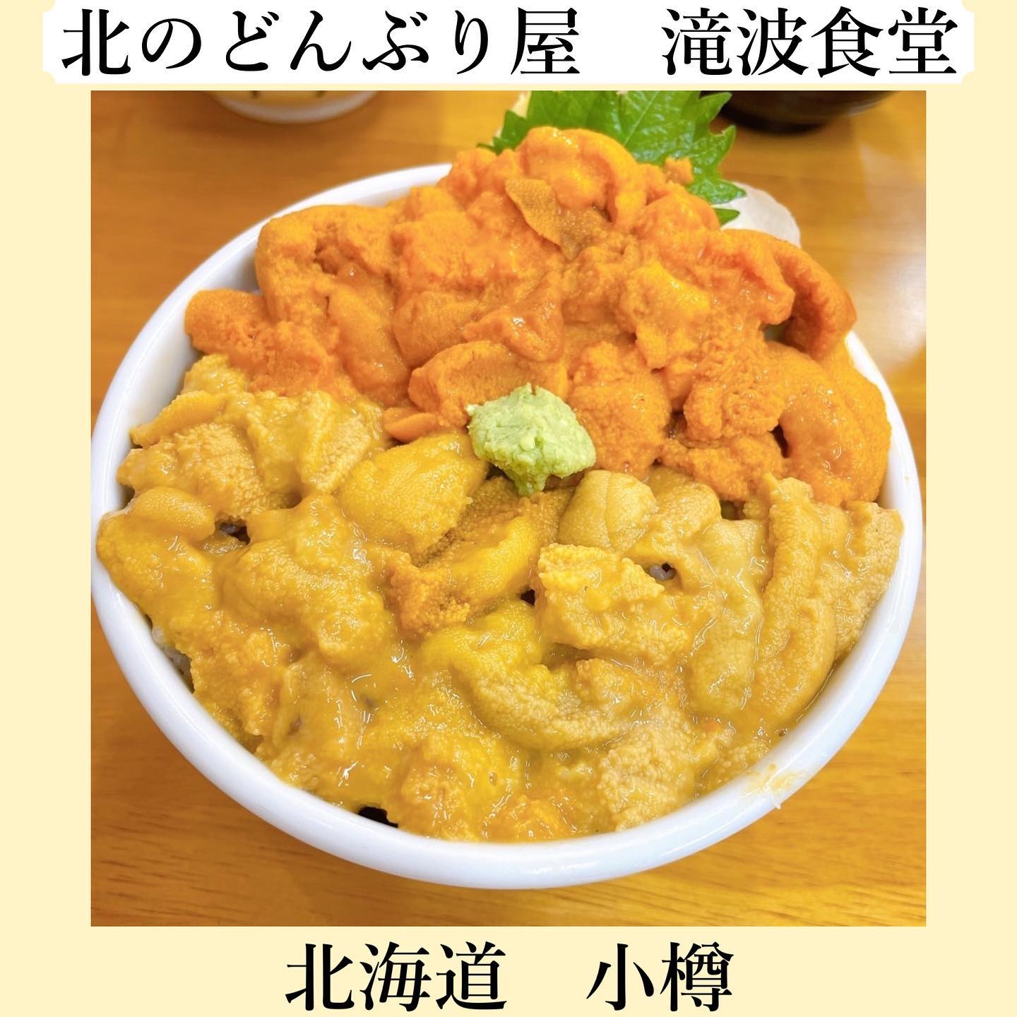 小樽の三角市場内にある北のどんぶり屋 滝波食堂は、市場ならではの新鮮ネタを自分で選んで丼にできる海鮮丼が魅力です。生うに・ボタンエビ・ほたて・サーモンなどを贅沢に味わえ、ネタは大ぶりで食べ応えがあります。
