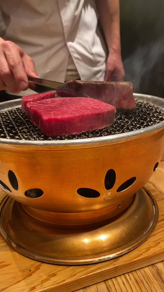 福岡No.1を誇る焼肉店です。黒毛和牛を塩焼き→味付けの順に提供するスタイルが特徴で、シャトーブリアンのサンドイッチが特に秀逸。約8部位がソースやトッピング付きで登場し、脂は控えめで柔らかい。コースは16,500円で予約も比較的取りやすい春吉の名店です。