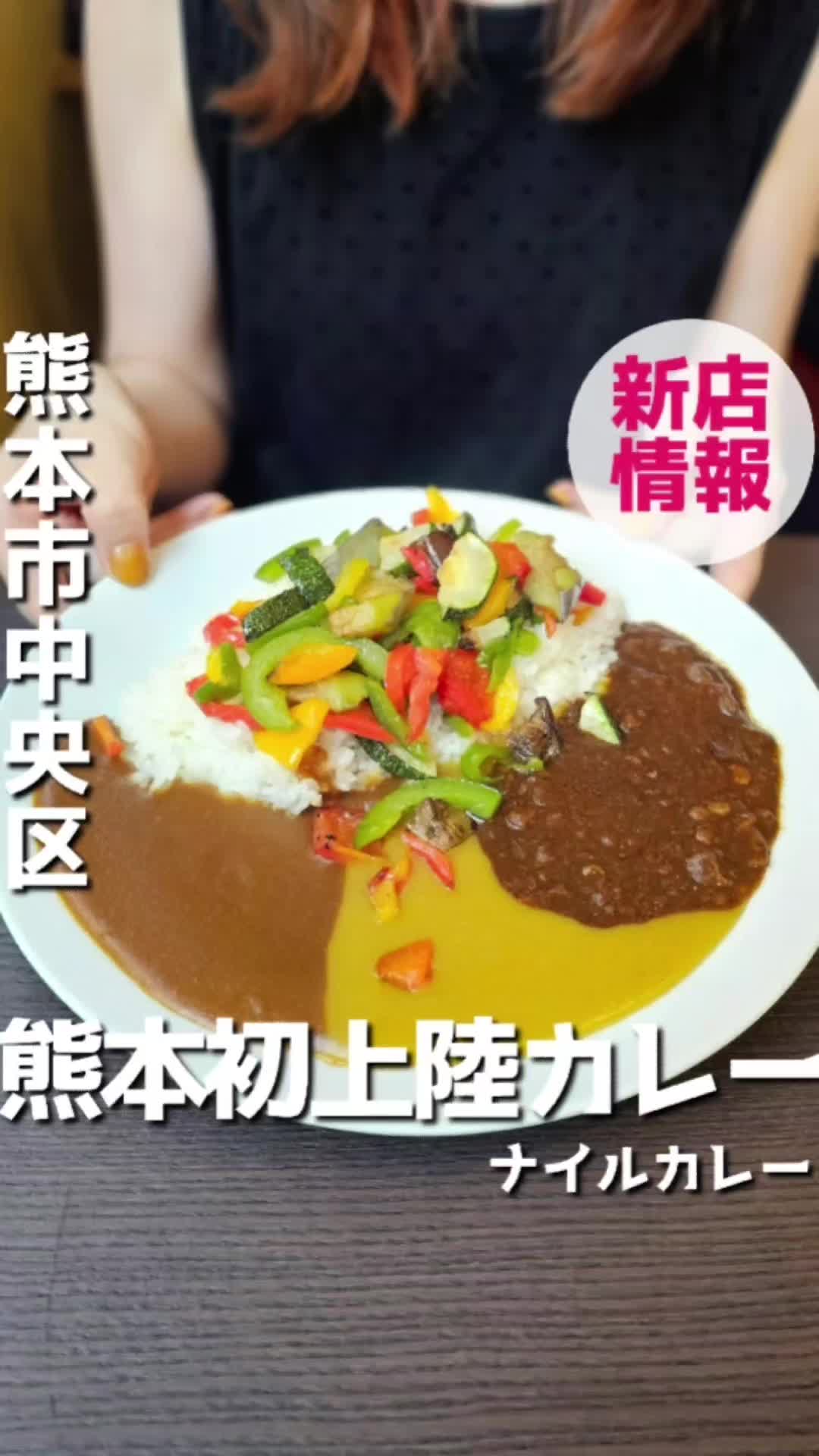福岡の伝説・博多ナイルカレーが熊本・藤崎八旛宮前へ。彩り野菜・チーズハンバーグなど3種のルーを用意、辛口黒ルーが特に人気。店内・テイクアウト可。駐車場なし。スマホ注文はやや分かりづらい点に留意ください。