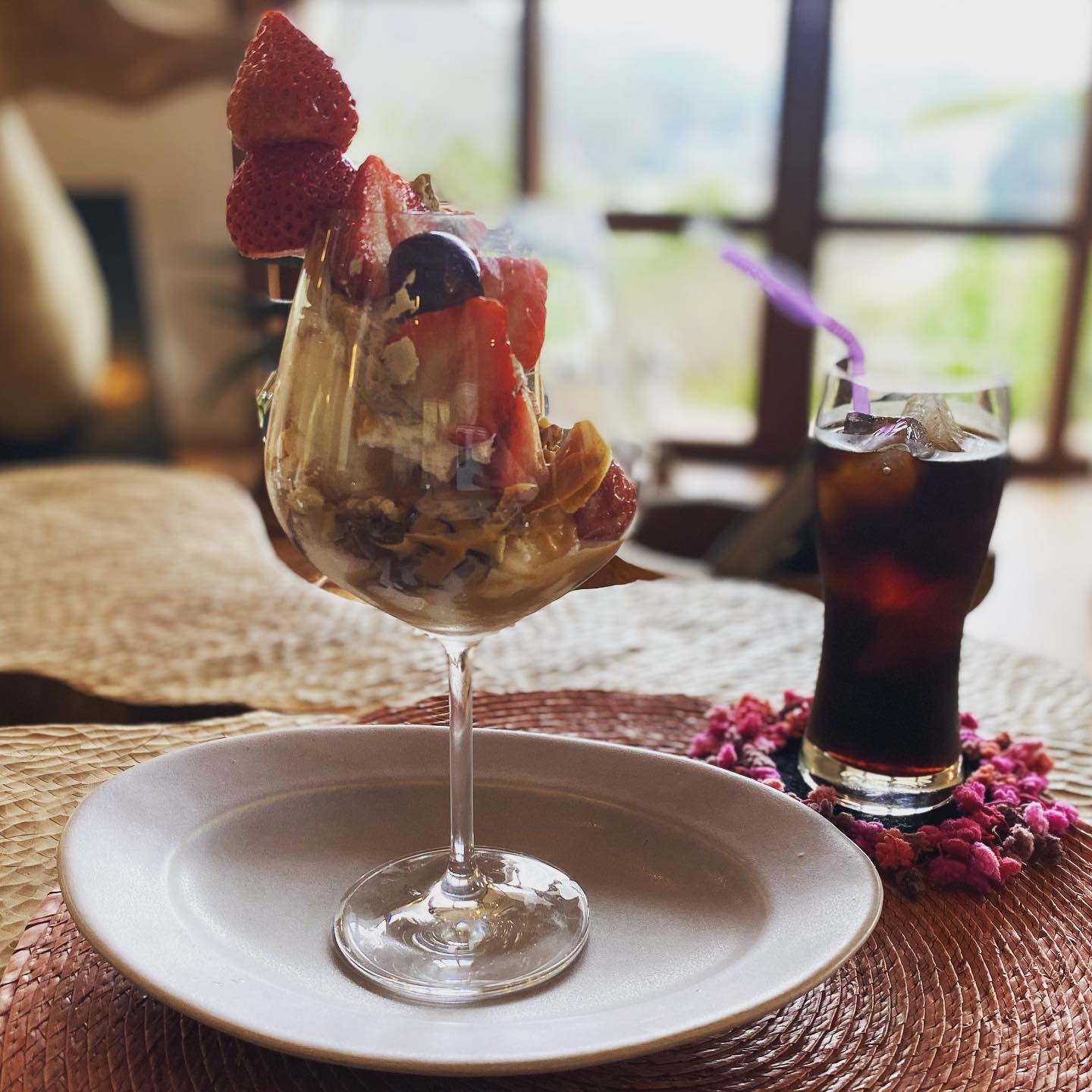 糸島市志摩桜井1052にあるピノ・グリは、細い道を抜けた先の別荘風の木造カフェです。店内は木彫りのインテリアが落ち着き、開放感があります。看板パフェはあまおう苺とローズマリーアイス、ラベンダーゼリーなど個性豊かで大人の味わいです。