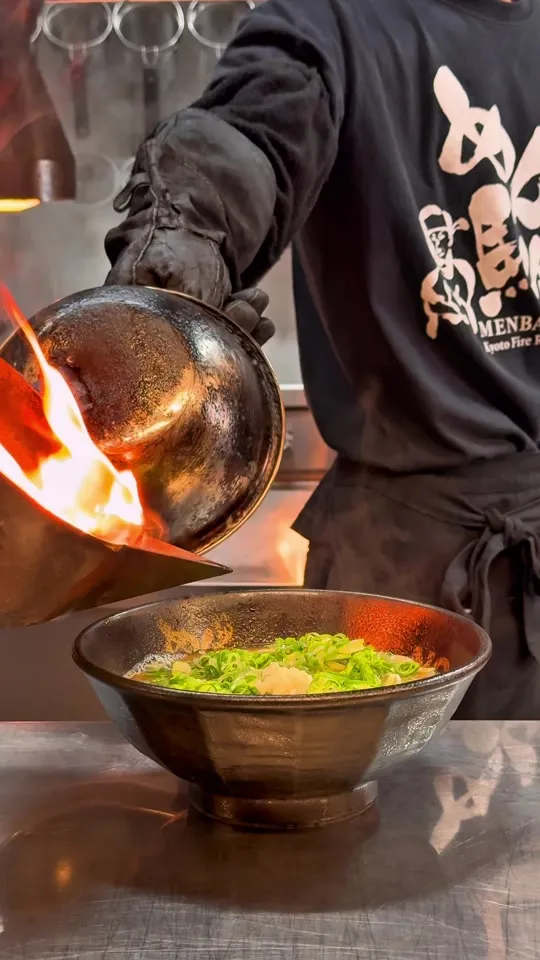 京都の煉獄杏寿郎のファイヤーラーメン🔥目の前で上がる火柱が、予想を軽く超えるくらい熱くておったまげ...