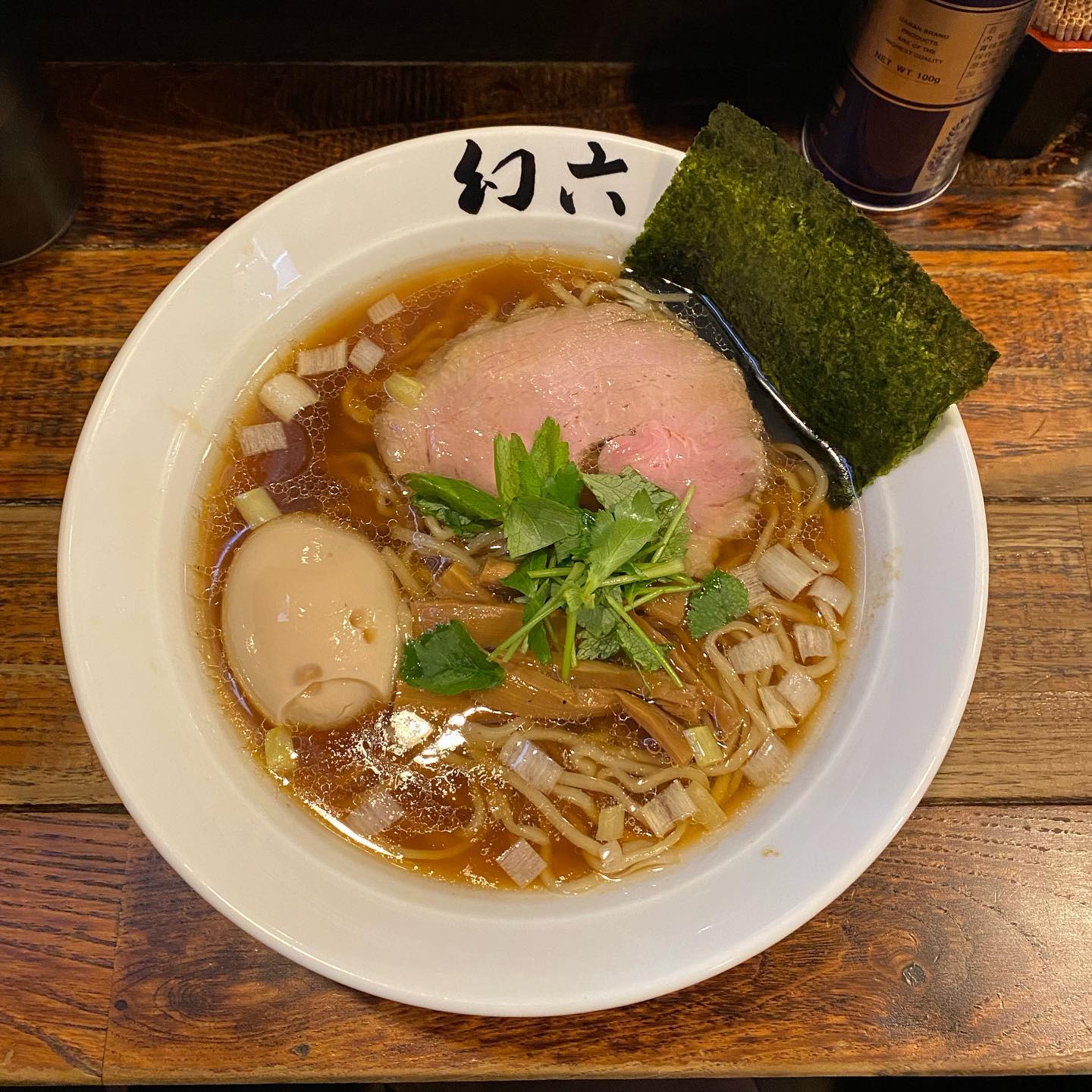 幻六は和風の醤油スープが特徴のラーメン店です。特製醤油そばにはワンタン・チャーシュー・味玉が付き、麺は柔らかくもちもち。卓上の刻みわさびで味変すると香りが引き立ちます。朝霞台駅から徒歩2分、席は6席です。