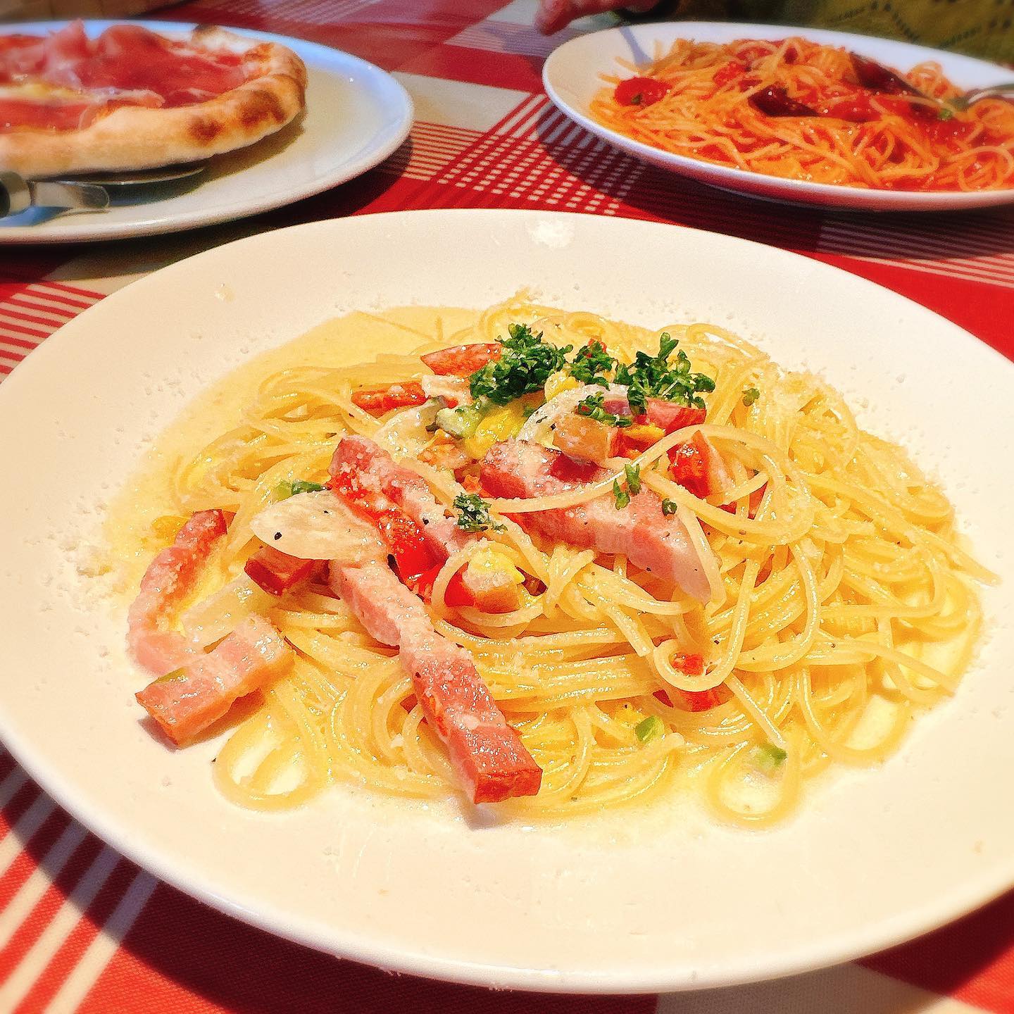群馬県玉村町のイタリアン『osteria a tavola(オステリア ア タボラ)』です。ランチセットにはサラダ・スープ・パンが付き、パンはもちもちで美味しいのが特徴。アラビアータ・マルゲリータ・ベーコンと玉ねぎのクリームパスタなど、種類が豊富です。
