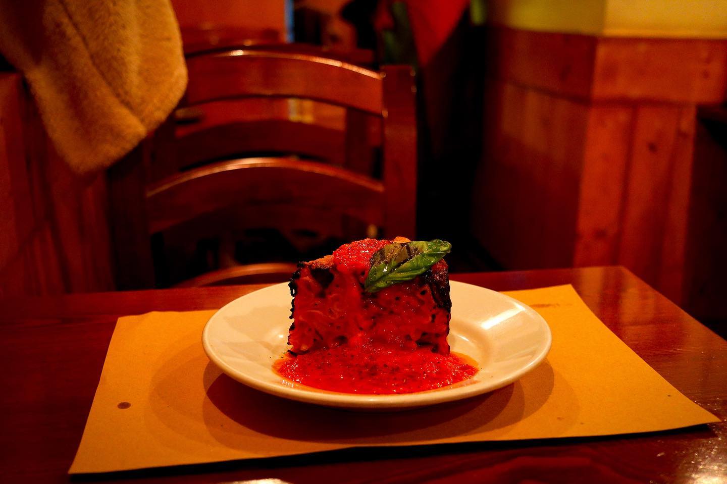 パスタに見えないパスタ豊西牛肉とトマトソースで固めたナポリ下町風焼きパスタ!