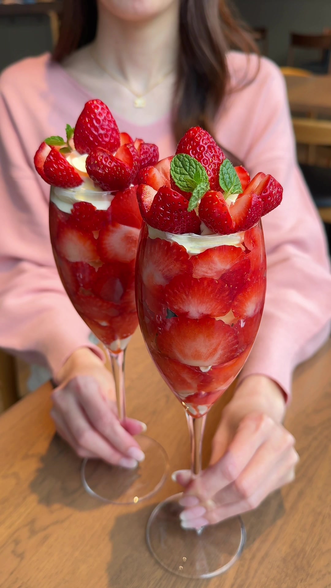 川沿いのワインバーで食べれる可愛すぎるあまおうのパフェ🍓...