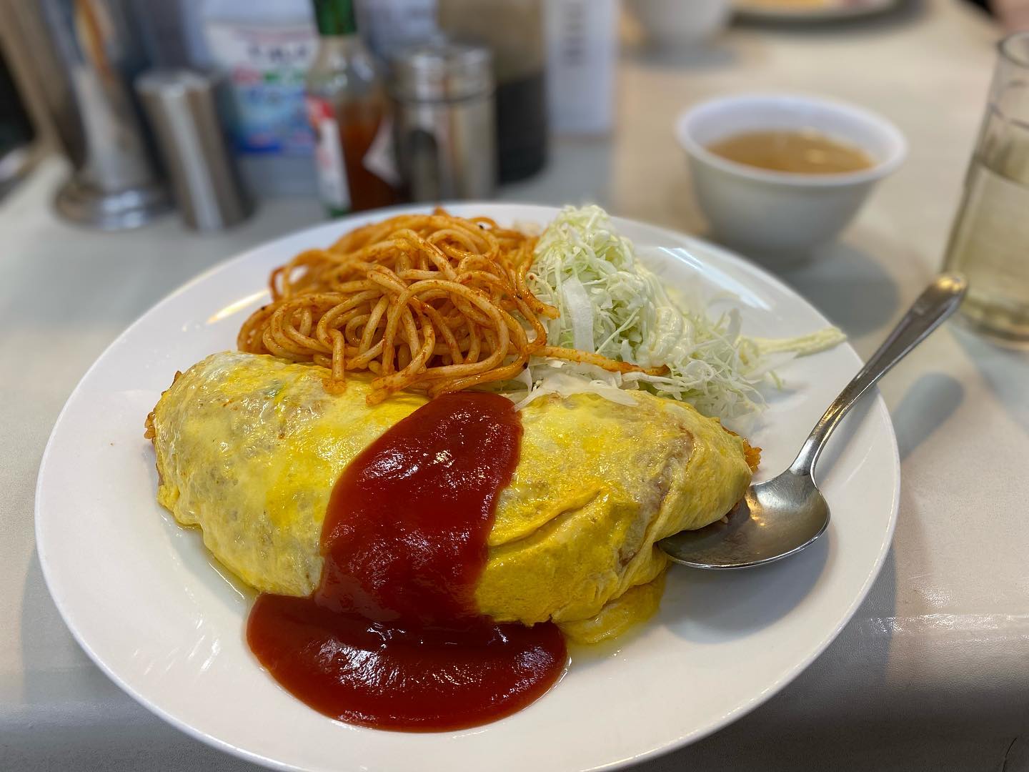 新橋の老舗洋食店、明治18年創業のむさしやはニュー新橋ビル内にあります。バター香るオムライスとナポリタンが定番で、オムライスにハンバーグを追加した大人のお子様ランチも人気。行列は必至ですが、14時過ぎは比較的すいています。