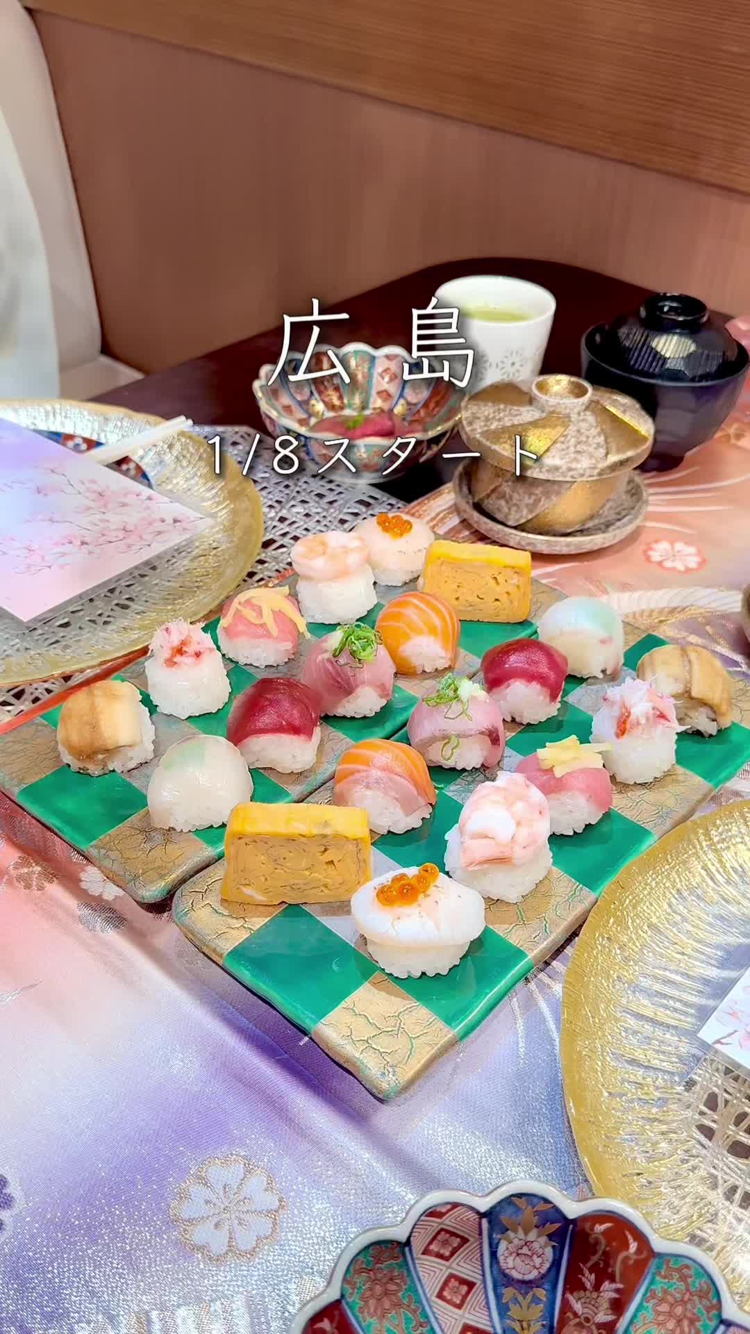 広島市中区のさかいのおにかいでは、5,500円の手毬寿司ランチコースが楽しめます。秋の紅葉空間から春を先取りした桜空間へと移ろう店内が魅力。ローストビーフや雲丹の茶碗蒸し、お味噌汁はおかわりOK。禁煙・個室あり。