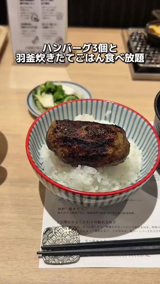 3個までおかわり自由なハンバーグ屋さん!チーズデミグラスつけたり、卵かけごはんにしたり、薬味つけたりいろんな食べ方が楽しめる🥩 #東京グルメ