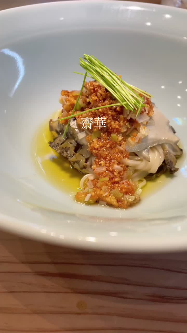 京都『齋華』食べログ:4.41 #青い春に 中華の名店のスペシャリテ…アワビの肝和え麺は本当に絶句す...