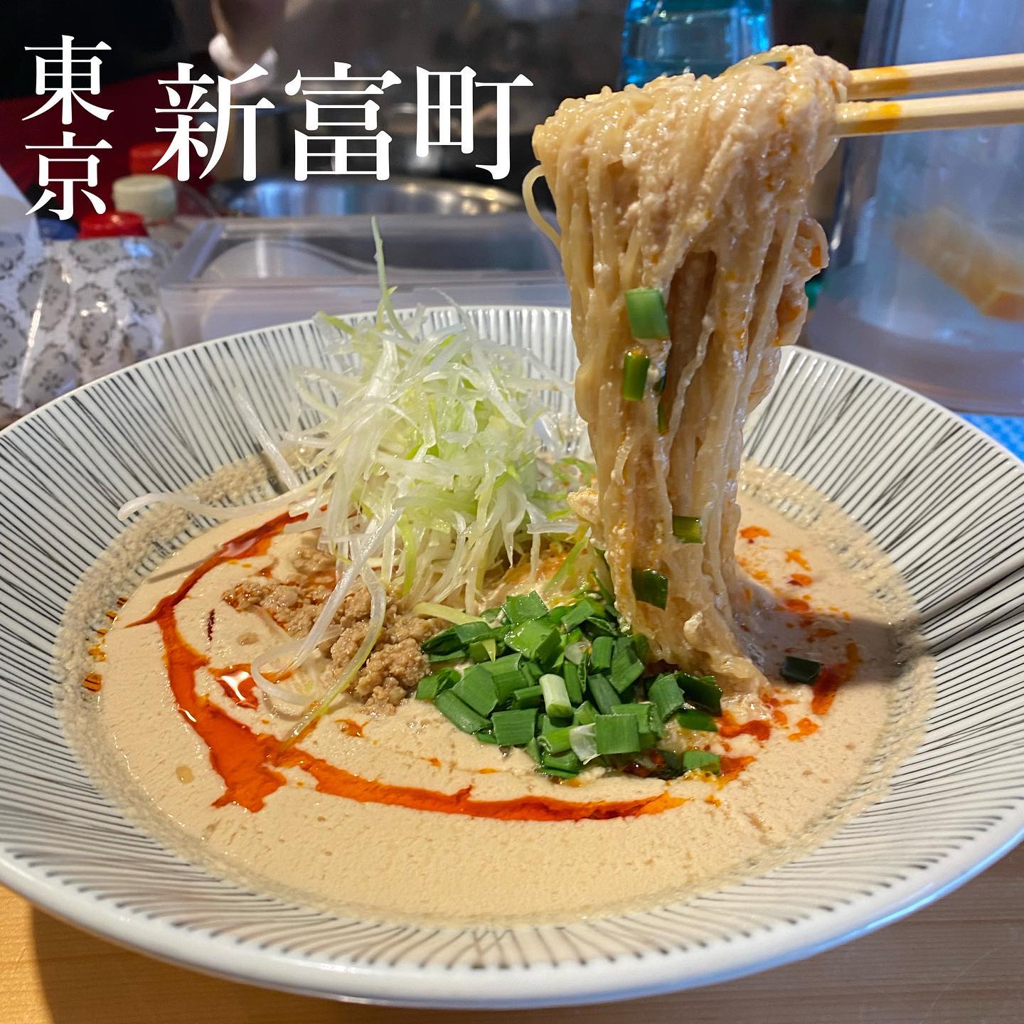 新富町にある極細麺の坦々麺が人気のお店。