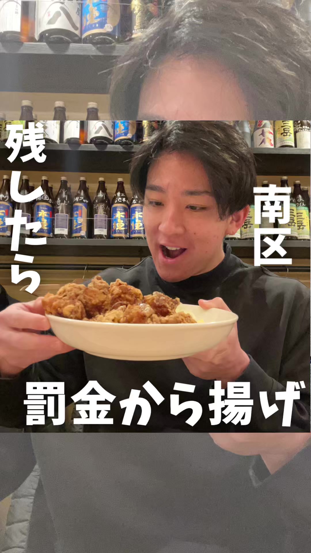 福岡市南区大楠の焼鳥店『焼鳥 焼牛 健』。1日10食限定の唐揚げチャレンジ定食850円(罰金制度あり)。11:30–13:00、17:00–23:00、現金可・予約不要。焼鳥と鶏醤油ラーメンが評判で、一人でも入りやすい店です。