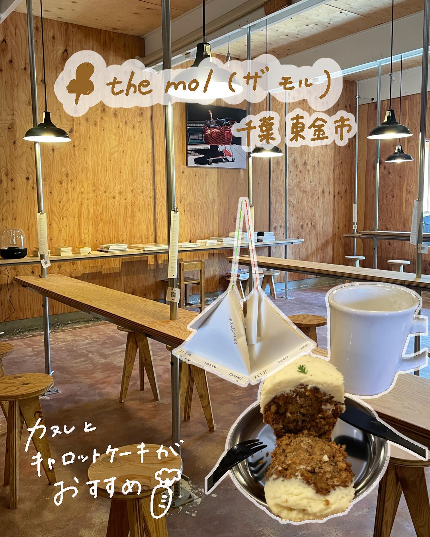 千葉県東金市のカフェ「themol」は、木彫のシンプルな店内と打ちっぱなしの雰囲気が魅力。パリ伝統の三角包みカヌレと挽きたてコーヒーを、駅から徒歩5分の立地で楽しめます。