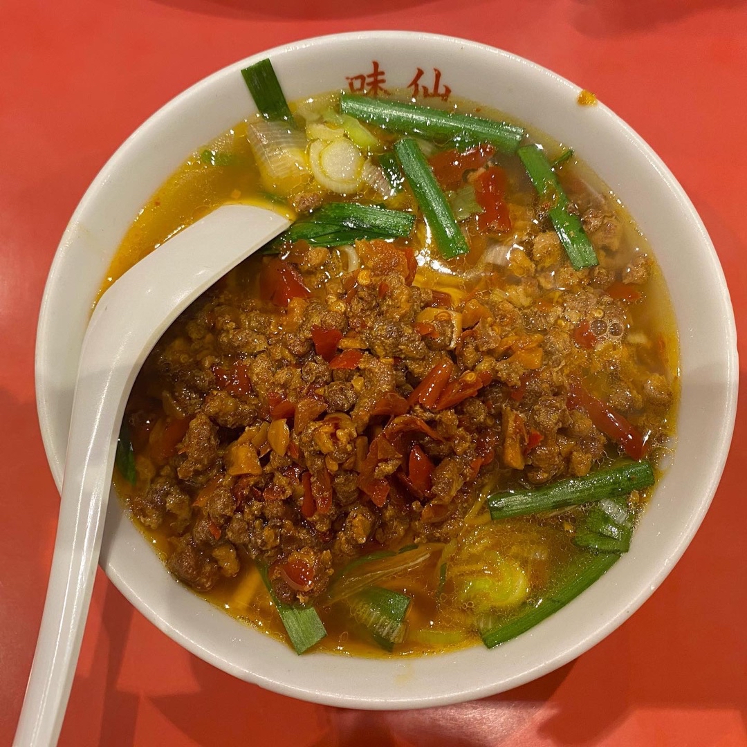 名古屋めしのソウルフード、味仙日進竹の山店の激辛台湾ラーメンが看板。醤油スープに唐辛子とニンニクがたっぷりで、豚ミンチの旨味が溶け出す濃厚なスープと太めの麺が特徴。駐車場有、火曜定休、日進市竹の山4-105。