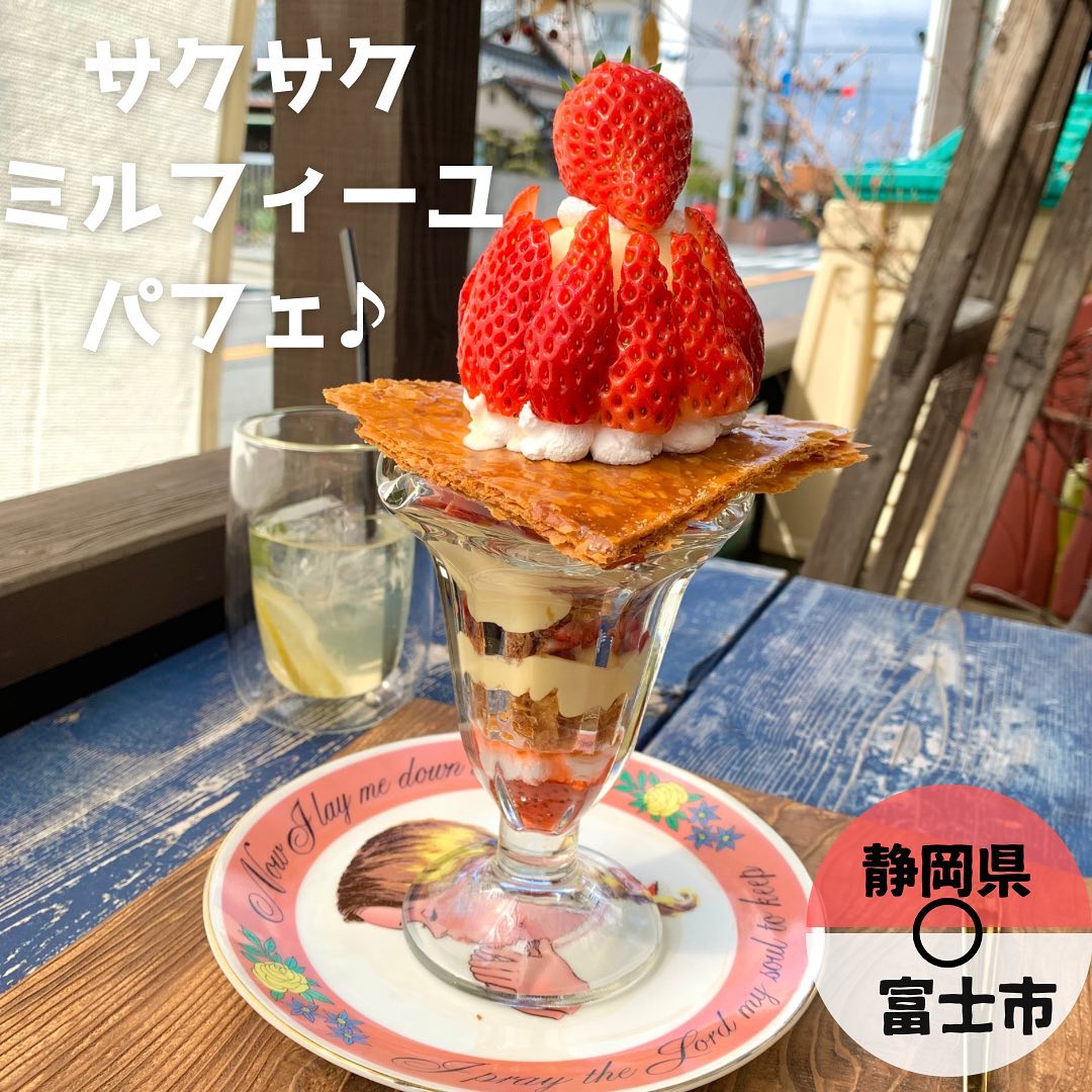 YOKO cafeは富士市のカフェ。店内とテラス席があり、風を感じながらかき氷とスイーツを楽しめます。定番のレモンレアチーズケーキやいちご練乳、いちごミルフィーユパフェが人気で、見た目も華やかなのが特徴です。