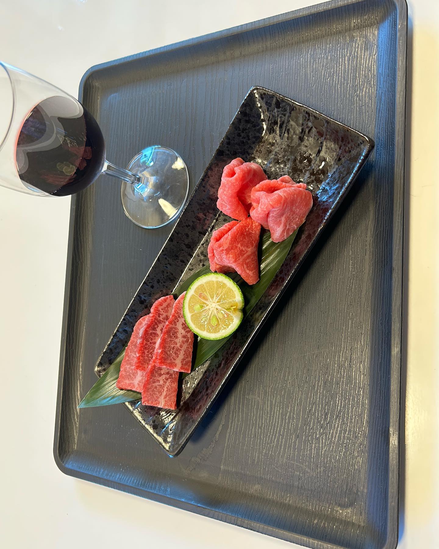 本日入荷鹿児島産黒毛和牛ロース薄切りと同じく鹿児島産黒毛和牛カルビの2種盛り合わせ
